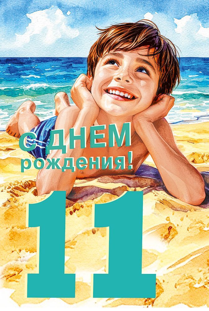 Открытка формата А5 предназначена для поздравления с одиннадцатилетием и ориентирована на использование в розничной продаже и оптовых поставках для магазинов подарков, книжных сетей и канцелярских отделов. Основа изделия выполнена из плотного картона, обеспечивающего стабильную геометрию и сохранность формы при транспортировке, выкладке в торговом зале и последующей эксплуатации у конечного пользователя. Лицевая сторона содержит полноцветное изображение мальчика на морском пляже с надписью «С Днем рождения! 11», что позволяет позиционировать открытку как готовое решение для поздравления мальчика школьного возраста. Печатное оформление выполнено с применением стойких красок, устойчивых к выцветанию при стандартных условиях хранения в помещении. Дополнительная отделка в виде радужных блесток в лаке придает поверхности избирательный глянец, подчеркивает крупные элементы дизайна и делает открытку более заметной на полке, при этом лаковый слой защищает печать от истирания при многократном контакте. Внутри предусмотрен поздравительный текст, что уменьшает необходимость самостоятельного подбора формулировок и делает изделие готовым к вручению сразу после подписи. Габариты готового изделия составляют 182 мм по длине и 122 мм по ширине, что соответствует стандартному формату для подбора конвертов и удобства размещения в витринах, настольных и напольных дисплеях. Картонная основа хорошо переносит вертикальное и горизонтальное хранение в коробах и стеллажах, не деформируется при кратковременных перепадах влажности в пределах типичных складских условий. Открытка поставляется по 10 штук, что удобно для формирования ассортиментных матриц, планирования запасов и равномерного пополнения полочного пространства. Изделие может использоваться как самостоятельный поздравительный атрибут или в составе подарочного набора, подходит для домашнего вручения, школьных мероприятий и тематических детских праздников.