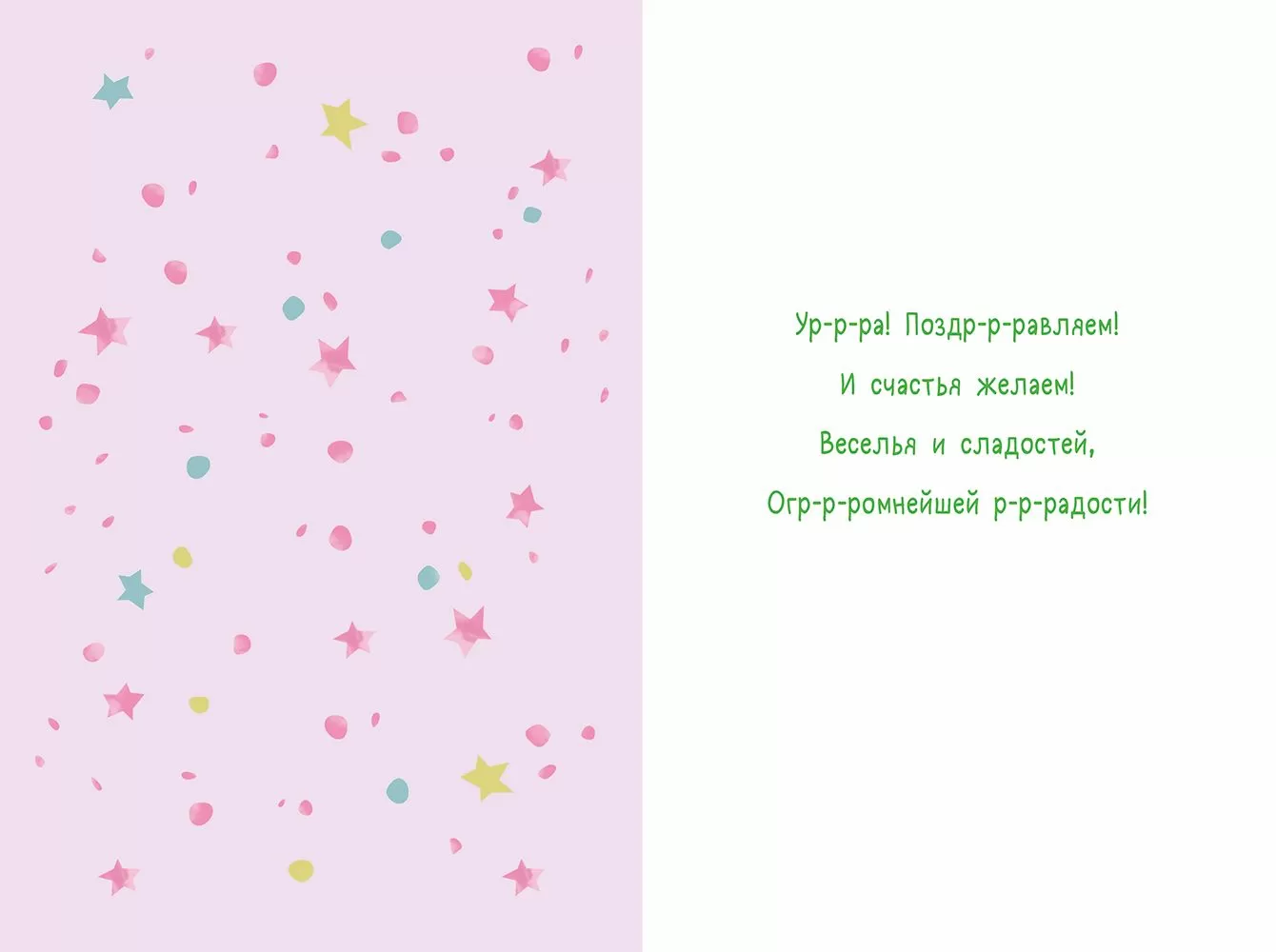 Открытка «Поздравляем!» в формате А5 станет прекрасным дополнением к подарку и украсит собой праздник. Забавный дизайн порадует каждого! Изделие украшено изображением необычного персонажа – зеленого динозаврика в розовой кигуруми. Внутри открытки – замечательные стихи с теплыми пожеланиями. Такой презент можно вручить в дополнение к основному подарку, чтобы украсить поздравление и сделать его более оригинальным. Изделие выполнено из качественных материалов, что обеспечивает ему прочность и долговечность, поэтому оно станет чудесным памятным сувениром для получателя.
