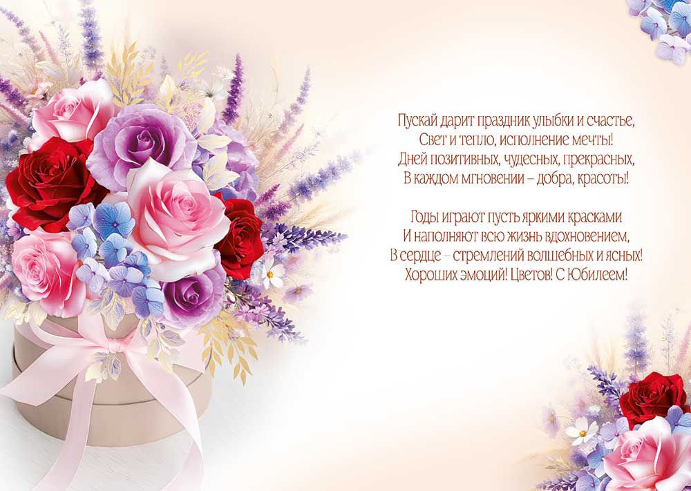 Открытка формата А4 предназначена для оформления поздравлений с юбилейными датами в частном и корпоративном формате и ориентирована на использование в качестве самостоятельного подарочного носителя текста. Изделие изготовлено из плотного картона, что обеспечивает стабильную геометрию, устойчивость к изгибам и сохранение формы при транспортировке и длительном хранении в складских условиях. Готовый размер открытки составляет 277 × 196 мм, что позволяет размещать её в стандартных файлах, папках и конвертах соответствующего формата, а также использовать в витринной выкладке без дополнительной подложки. Лицевая сторона оформлена крупной цветочной композицией с розами и декоративными растительными элементами, дополненными золотой фольгой, за счёт чего отдельные фрагменты изображения имеют выраженный металлический блеск и хорошо читаются при разном освещении, что важно для презентации товара в торговом зале. На лицевой стороне нанесена надпись «С Юбилеем!», внутри предусмотрен готовый поздравительный текст, позволяющий применять открытку без дополнительной доработки, при этом остаётся свободное место для персональных записей. Картонная основа подходит для стандартных шариковых и гелевых ручек, не даёт сильного просвечивания и смазывания чернил при обычном режиме эксплуатации. Открытка рассчитана на использование в ассортименте магазинов подарков, книжных сетей, цветочных салонов и корпоративных служб закупок для поздравления сотрудников и партнёров, хорошо сочетается с подарочной упаковкой и букетами за счёт универсальной цветочной тематики и нейтрального стилевого решения. В одной упаковке — 10 изделий, что удобно при формировании оптовых заказов, планировании остатков и выкладке по фронтам, а также позволяет поддерживать единый визуальный ряд при массовых поздравлениях.