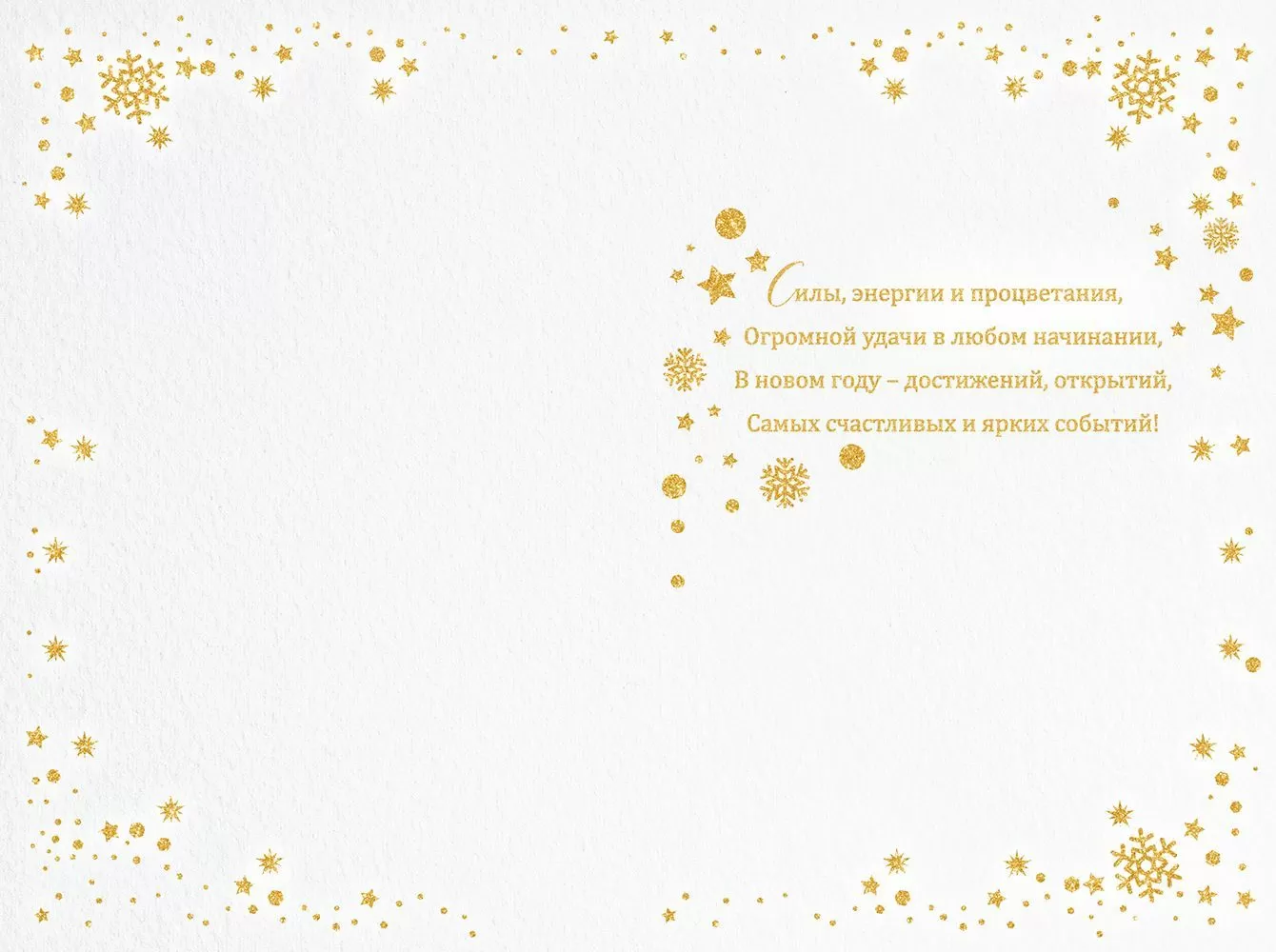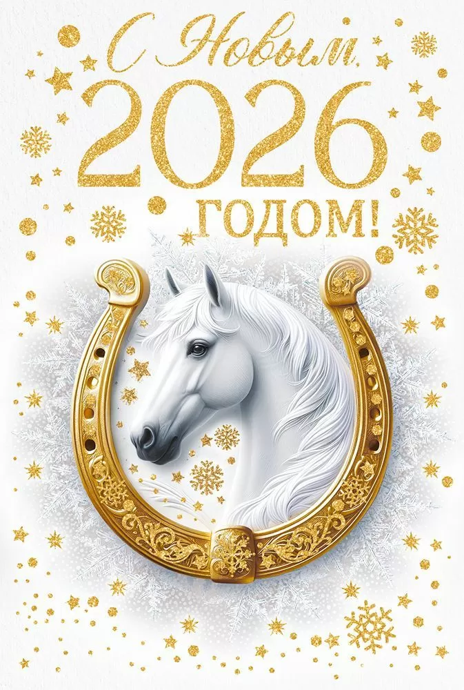 Открытка «С Новым 2026 годом!» с изысканным дизайном в формате А5 станет прекрасным дополнением к подарку и украсит собой всеми любимый праздник. В центре композиции на изделии – изображение белоснежной лошади в рамке из золотой подковы. Узоры в виде снежинок поддерживают сюжет. Внутри открытки – замечательные стихи с теплыми пожеланиями. Такой презент можно вручить в дополнение к основному подарку, чтобы украсить поздравление и сделать его более оригинальным. Изделие выполнено из качественных материалов, что обеспечивает ему прочность и долговечность, поэтому оно станет чудесным памятным сувениром для получателя.