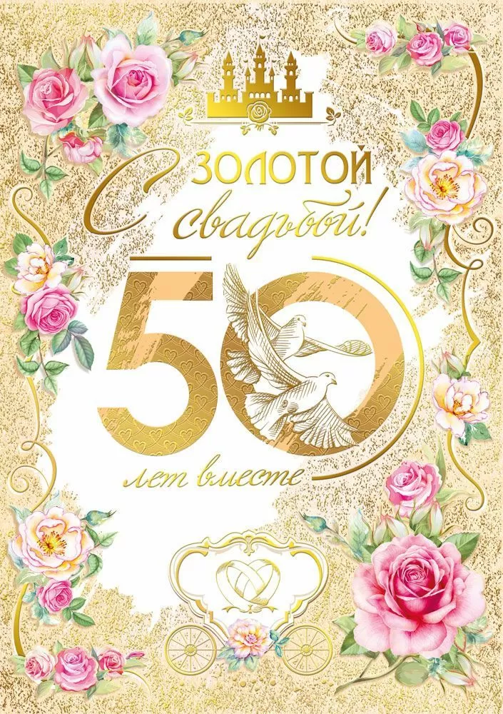 Открытка «С золотой свадьбой! 50 лет вместе»