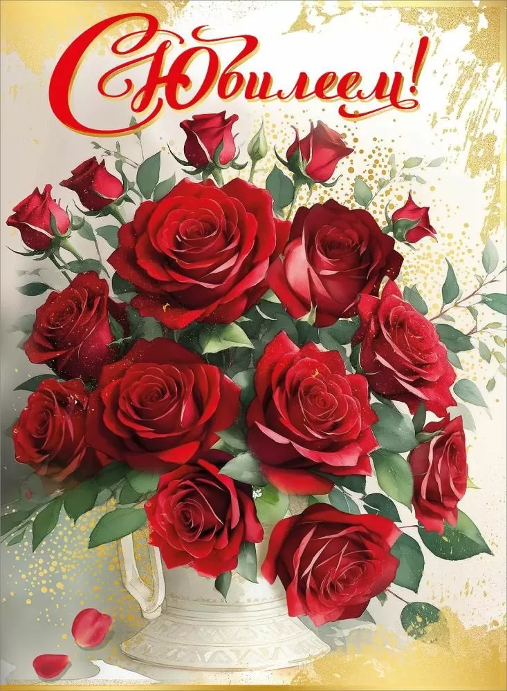 Поздравительная открытка - двусторонняя - снаружи и изнутри она украшена потрясающими иллюстрациями: букетом из роз, изысканные узоры, роскошные вензеля. Такое богатое оформление завораживает и очаровывает с первого взгляда! Внутри есть поздравительный стих с теплыми пожеланиями. Подарочная открытка изготовлена из плотного картона. Материал прочный, хорошо держит форму. Открытка не помнется при транспортировке и использовании. Сверху на картонную основу нанесено четкое полноцветное изображение украшенное золотыми блестками. Благодаря высокому качеству печати и защитному покрытию краски не выцветут, и открытка будет радовать адресата многие годы.