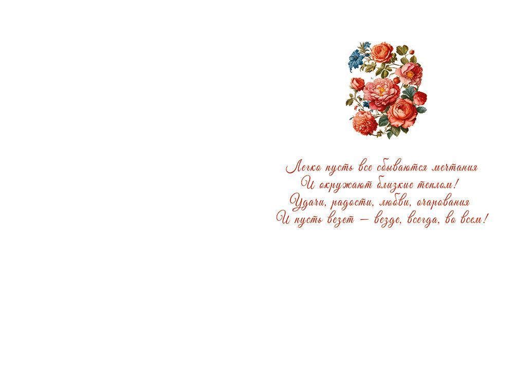 Открытка формата А5 предназначена для оформления поздравлений с юбилеем и ориентирована на использование в розничной продаже и оптовых поставках для торговых сетей, канцелярских отделов и сувенирных ассортиментов. Изделие выполнено из плотного картона, обеспечивающего стабильную геометрию, устойчивость к изгибам и сохранность формы при хранении и транспортировке. Размеры готовой открытки составляют 182 × 122 мм, что удобно для стандартных витрин, почтовых отправлений и упаковки в типовые конверты соответствующего формата. Лицевая сторона оформлена крупной цветочной композицией с розами и пионами на светлом фоне с декоративной рамкой, что делает открытку универсальной для поздравления женщин и мужчин разных возрастных категорий. На лицевой стороне размещена надпись «С юбилеем!», дополненная золотой фольгой, за счет чего текст читается отчетливо и визуально выделяется на полке. Применение золотой фольги в сочетании с глянцевым УФ-лаком повышает износостойкость печати, защищает изображение от истирания и выцветания при частом контакте с руками и под воздействием света, что особенно важно для оптовых покупателей при длительном хранении партий товара на складе и в торговом зале. Внутри открытки предусмотрен готовый поздравительный текст, позволяющий использовать изделие без дополнительной подготовки, что удобно для конечного покупателя и ускоряет выбор. Поверхность картона внутри подходит для внесения рукописных дополнений шариковыми и гелевыми ручками без растекания чернил. В одной упаковке содержится 10 открыток, что упрощает планирование закупок для розничных точек и формирование выкладки по нескольким ценовым или праздничным группам. Конструкция изделия не требует особых условий хранения: открытки рекомендуется размещать в сухих помещениях, в горизонтальных или вертикальных стопках, с защитой от прямых солнечных лучей, что позволяет минимизировать риск деформации и сохранить товарный вид на протяжении всего срока реализации.