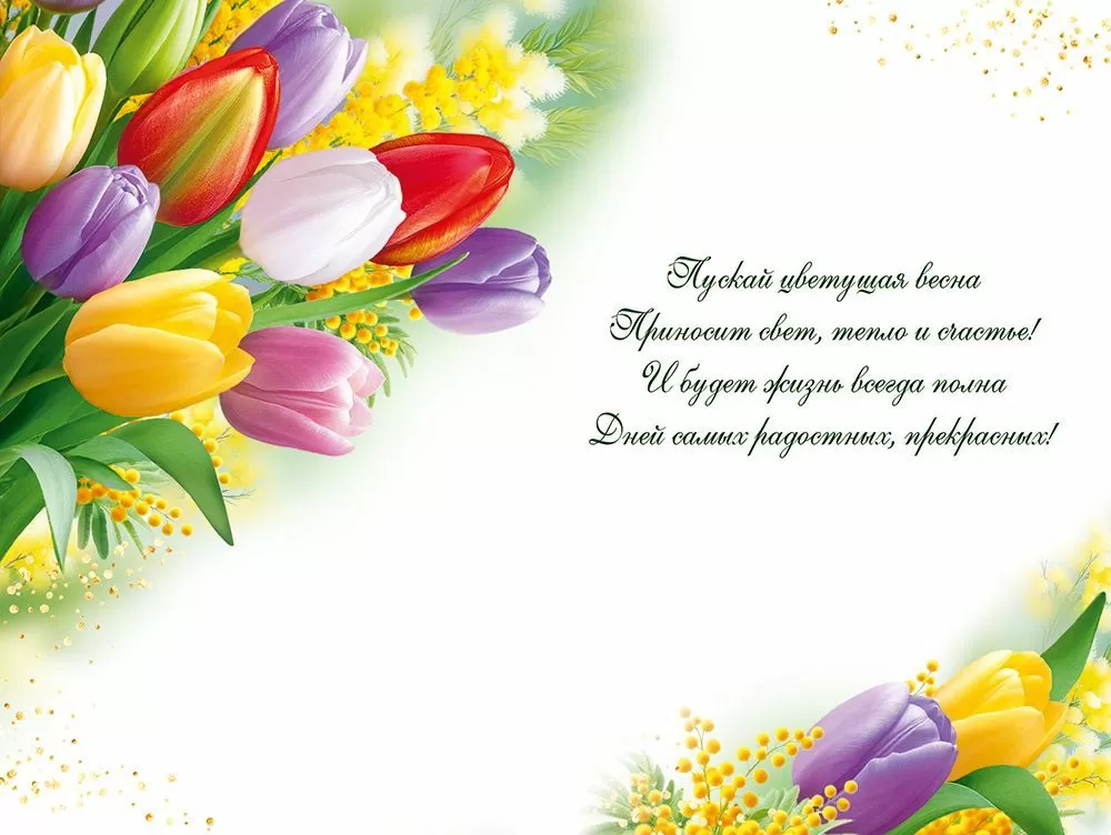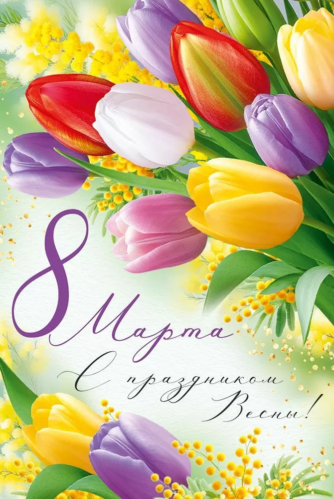 Открытка "8 Марта!" в формате А5 станет прекрасным дополнением к любому подарку. Ее женственное оформление сделает любое поздравление незабываемым! Изделие украшено яркими тюльпанами различных цветов и солнечной мимозой, создавая весеннее настроение. Такое оформление вызывает чувство свежести и легкости, передавая атмосферу весеннего пробуждения и радости от праздника. Внутри открытки – замечательные стихи с прекрасными пожеланиями. Такой презент можно вручить в дополнение к основному подарку, чтобы украсить поздравление и сделать его более оригинальным. Изделие выполнено из качественных материалов, что обеспечивает ему прочность и долговечность, поэтому оно станет чудесным памятным сувениром для получателя.