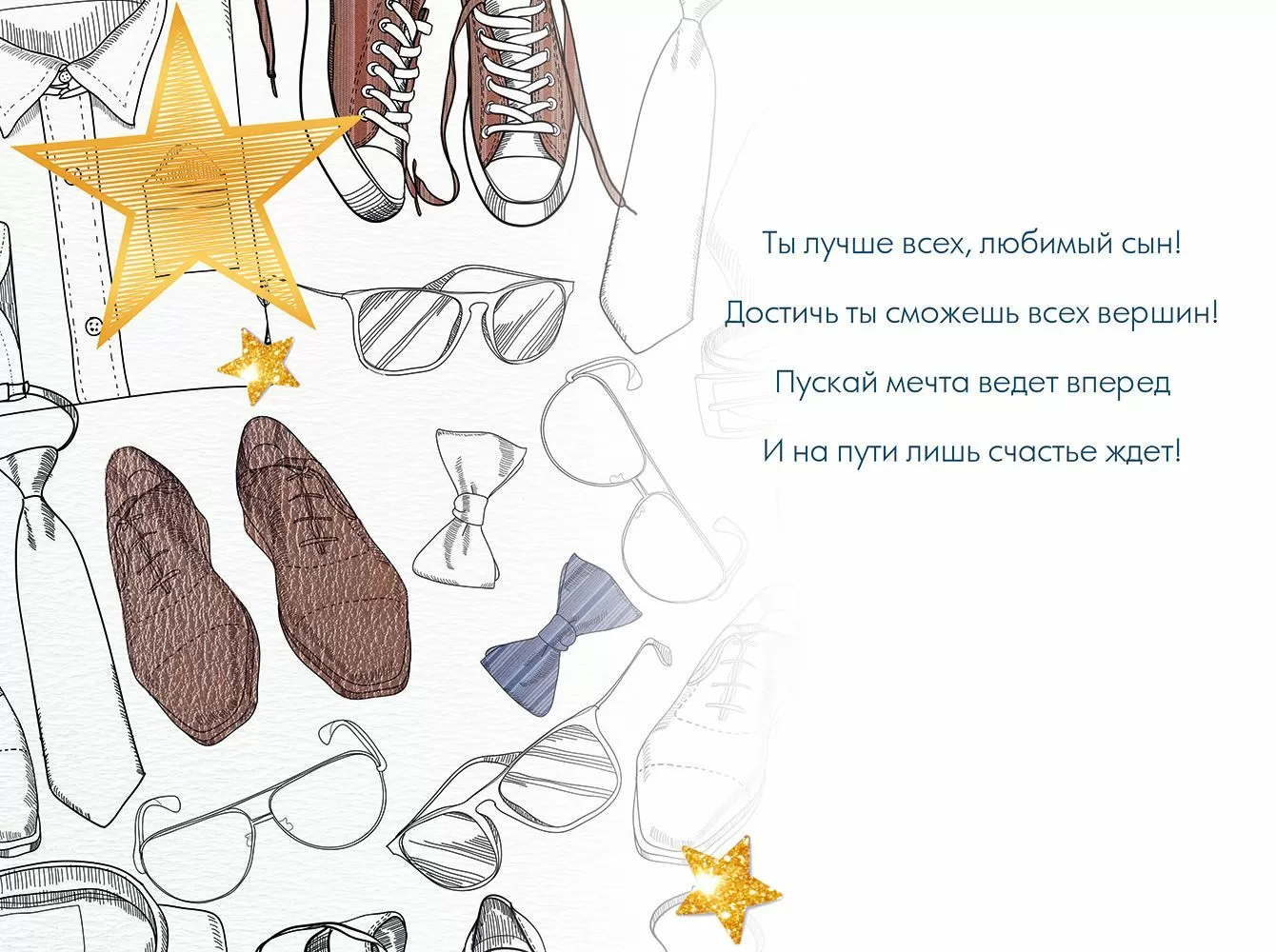 Открытка «Любимому сыну» в формате А5 станет прекрасным дополнением к подарку и украсит собой любой повод. Необычный дизайн идеально подходит для вручения открытки истинному любителю экстрима! Множество деталей складываются в одну большую и целостную композицию. Здесь имеет значение все. Главным акцентом ее является изображение мотоцикла, как символ скорости и стремительности. Внутри открытки – замечательные стихи с теплыми пожеланиями. Такой презент можно вручить в дополнение к основному подарку, чтобы украсить поздравление и сделать его более оригинальным. Изделие выполнено из качественных материалов, что обеспечивает ему прочность и долговечность, поэтому оно станет чудесным памятным сувениром для получателя.
