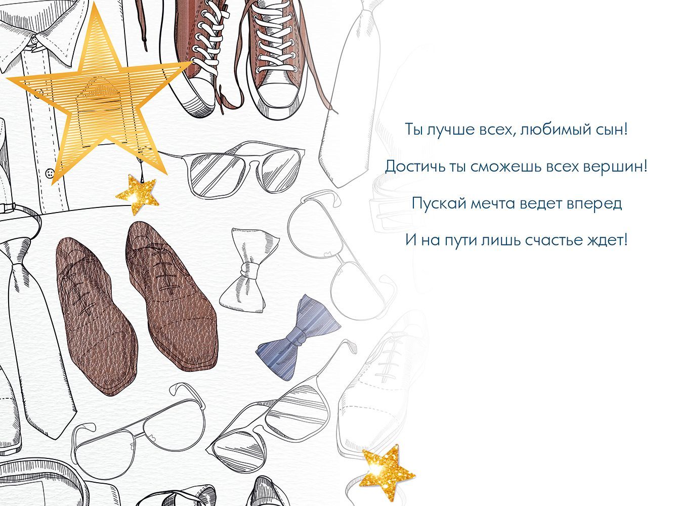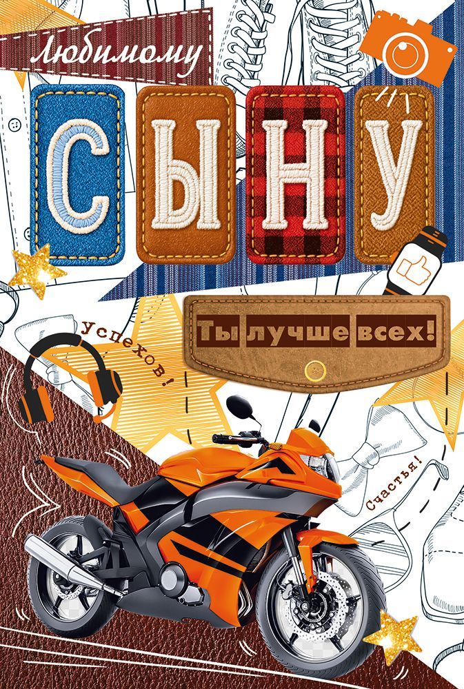 Открытка формата А5 предназначена для поздравления сына и ориентирована на использование в розничной продаже и оптовых закупках для ассортимента праздничной продукции. Основа изделия выполнена из плотного картона, обеспечивающего стабильную геометрию, устойчивость к изгибам и износу при транспортировке, выкладке и хранении. Глянцевый УФ-лак на лицевой стороне повышает износостойкость печати, защищает изображение от истирания и придаёт поверхности дополнительную стойкость к влаге и случайным загрязнениям, что особенно важно при многоразовых перекомплектациях и перемещении товара между складами и торговыми точками. На лицевой стороне размещена тематическая композиция с надписями «Любимому сыну» и «Ты лучше всех!», динамичным изображением мотоцикла и графическими элементами в молодежном стиле, что определяет назначение открытки как поздравительной для подростка или молодого мужчины на день рождения, выпускной, личные достижения и другие семейные события. Внутри предусмотрен готовый печатный текст, позволяющий использовать открытку без дополнительной доработки, что сокращает время выбора и упрощает применение в рознице. Длина готового изделия составляет 182 мм, ширина 122 мм, размеры выдержаны в допусках, удобны для стандартных конвертов и позволяют рационально размещать товар на полках, в напольных и настольных стойках, а также в подвесных экспозиторах. Плотный картон сохраняет форму при вертикальной установке открытки, что важно при витринной демонстрации. Упаковка содержит 10 одинаковых изделий, что облегчает планирование закупок, учет остатков и формирование однородных выкладок по тематике «для сына». Открытка подходит для использования как самостоятельный элемент поздравления или в дополнение к подарку, не требует специальных условий хранения и транспортируется в стандартных коробах без риска повреждения печати и основы.