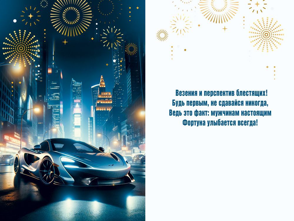 Открытка формата А5 предназначена для поздравления с днём рождения и ориентирована на использование в розничной продаже и оптовых поставках для магазинов подарков, канцтоваров и сувенирной продукции. Изделие изготовлено из плотного картона, обеспечивающего устойчивость к изгибам и истиранию при транспортировке, выкладке и хранении в стандартных торговых стеллажах и лотках. Готовый размер открытки составляет 182 × 122 мм, что удобно для размещения в распространённых форматах почтовых конвертов и упаковочных пакетов. Лицевая сторона содержит полноцветное изображение спортивного автомобиля на ночной городской улице с фейерверками и надписью «С Днём Рождения!», что делает открытку актуальной для поздравления подростков и взрослых, в том числе мужчин, любителей автомобилей и динамичной городской тематики. Печать выполнена с двусторонним изображением: внутренняя сторона содержит готовый поздравительный текст, позволяющий использовать изделие без дополнительной доработки, при этом остаётся свободное поле для личной подписи и индивидуальных пожеланий. Поверхность оформлена глянцевым УФ-лаком, который подчёркивает цветопередачу, придаёт изображению выраженный визуальный эффект и дополнительно защищает печатный слой от влаги, истирания и выцветания при длительном хранении на складе или в торговом зале. Материал и тип отделки позволяют сохранять геометрию открытки при многократном перелистывании и эксплуатации конечным пользователем. В одной упаковке содержится 10 изделий, что удобно для формирования упорядоченного складского учёта, планирования закупок и поддержания стабильного ассортимента по тематике «День рождения» в различных ценовых и стилистических линейках. Открытка подходит для вручения как самостоятельный элемент поздравления или в составе подарочного набора, легко комбинируется с подарочными пакетами и конвертами соответствующего формата и может использоваться в розничных и корпоративных сценариях дарения.