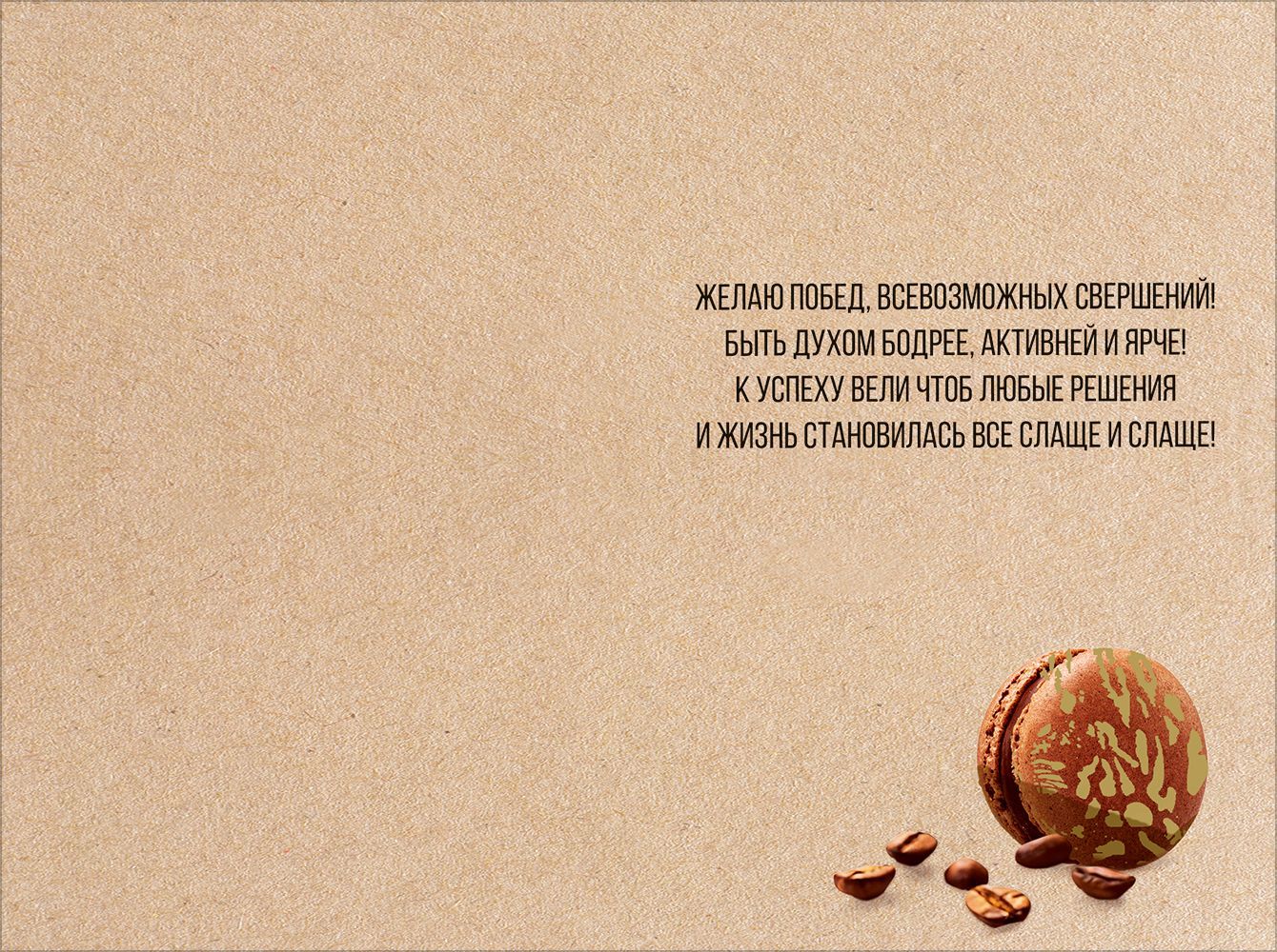 Открытка формата А5 выполнена из плотного картона и предназначена для универсальных поздравлений в деловой и личной сфере. Готовое изделие имеет размеры 182 × 122 мм, что удобно для стандартных почтовых конвертов и обеспечивает совместимость с распространёнными системами хранения и выкладки на полке. Лицевая сторона оформлена двусторонним изображением в кофейно-шоколадной гамме: композиция из кофейных зёрен, кондитерских изделий и фисташек дополнена стилизованным фоном и декоративным элементом в виде таблички с надписью «Поздравляю!», что делает открытку уместной для дней рождения, профессиональных праздников, поздравлений коллег, партнёров и клиентов. Внутри размещён готовый текст поздравления, позволяющий использовать изделие без дополнительной доработки, что важно при массовых закупках и быстром обслуживании потока получателей. Отделка выполнена с применением золотой фольги и серебряного пантона, за счёт чего отдельные элементы композиции имеют выраженный металлический блеск и повышенную визуальную читаемость на расстоянии, что удобно при выкладке на витрине и в кассовой зоне. Картон обладает достаточной жёсткостью для сохранения формы при транспортировке и длительном хранении, не деформируется при стандартных нагрузках, допускает использование в почтовых отправлениях при соблюдении базовых условий упаковки. Открытка хорошо сочетается с подарочными наборами сладостей, кофе и сувенирной продукцией, может включаться в корпоративные подарочные комплекты как нейтральный, но выразительный элемент. В упаковке 10. Такое количество удобно для планирования закупок по торговым точкам, офисам и небольшим партиям для мероприятий, снижает затраты на пересорт и облегчает учёт остатков на складе и в розничной выкладке.