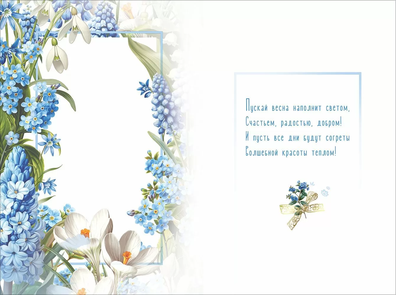 Открытка «8 Марта» в формате А5 станет прекрасным дополнением к подарку и украсит Международный женский день. Романтичный и свежий дизайн с изображением весенних цветов в белых и голубых оттенках преобразит любое поздравление. Цветочная рамка – это необычное композиционное решение, которое сделает общий внешний вид изделия особенно ярким и запоминающимся. Внутри открытки – замечательные стихи с теплыми пожеланиями. Такой презент можно вручить в дополнение к основному подарку, чтобы украсить поздравление и сделать его более оригинальным. Изделие выполнено из качественных материалов, что обеспечивает ему прочность и долговечность, поэтому оно станет чудесным памятным сувениром для получателя.