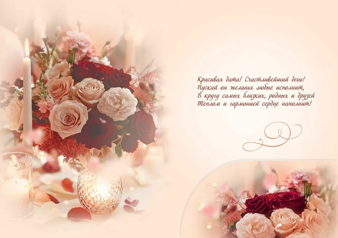 Открытка с клапаном для денег – идеальное решение для поздравления с праздником! С размером А4 (196х277 мм) она прекрасно подходит для торжественных событий. Приятная теплая иллюстрация с цветами и свечами украшена мерцающими радужными блестками в лаке. Открытка выглядит очаровательно и привлекает внимание. Поздравительная открытка изготовлена из прочного материала, который хорошо держит форму. Открытка не помнется при транспортировке и использовании. Сверху на картонную основу нанесено четкое полноцветное изображение. Благодаря высокому качеству печати и защитному покрытию краски не выцветут, и открытка на праздник будет радовать адресата многие годы. В одной упаковке – 10 шт.