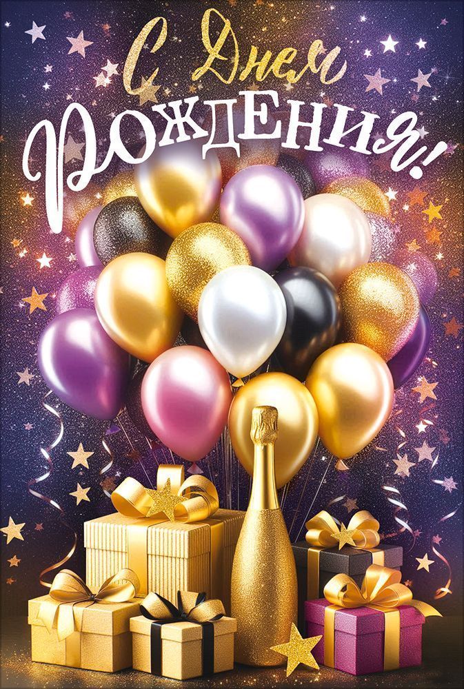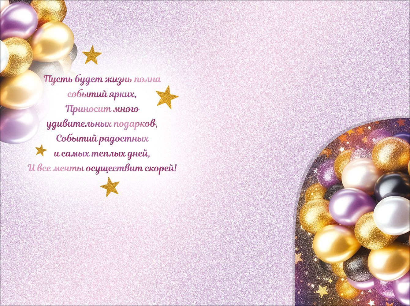 Открытка формата А5 предназначена для оформления поздравлений с днём рождения и ориентирована на использование в оптовых поставках для розничных сетей, сувенирных отделов и корпоративных закупок. Изделие выполнено из плотного картона, обеспечивающего стабильную геометрию и износостойкость при транспортировке, выкладке и многократном перелистывании. Готовый размер открытки составляет 182 × 122 мм, что удобно как для стандартных витрин и почтовых отправлений, так и для вложения в подарочные пакеты. Лицевая сторона содержит полноцветное изображение праздничной композиции с воздушными шарами, подарочными коробками и бутылкой в золотисто-фиолетовой гамме, с крупной надписью «С Днём Рождения!», что делает открытку универсальной для поздравления взрослых получателей в личных и деловых ситуациях. Двустороннее изображение обеспечивает целостный внешний вид при размещении на полке или в витринных стойках, а наличие внутреннего текста сокращает время обслуживания в рознице и упрощает выбор для конечного покупателя, которому не требуется подбирать формулировки самостоятельно. Конструктив с карманом/клапаном для денег позволяет использовать открытку одновременно как носитель поздравления и как упаковку для денежного подарка, подарочного сертификата или небольшой плоской вложки, что повышает функциональность товара и его оборачиваемость. Отделка без дополнительных спецэффектов снижает риск повреждений при хранении, делает поверхность менее чувствительной к царапинам и упрощает штабелирование в коробах и лотках. Плотный картон сохраняет форму изделия в торговом зале и при пересылке, не деформируется при стандартных условиях влажности и температуры. Упаковка по 10 штук удобна для планирования ассортимента, формирования заказов и инвентаризации, а также позволяет формировать равномерную выкладку по нескольким полочным фронтам в магазинах различного формата. Открытка подходит для использования как самостоятельный элемент поздравления, так и в составе комплексных подарочных наборов.