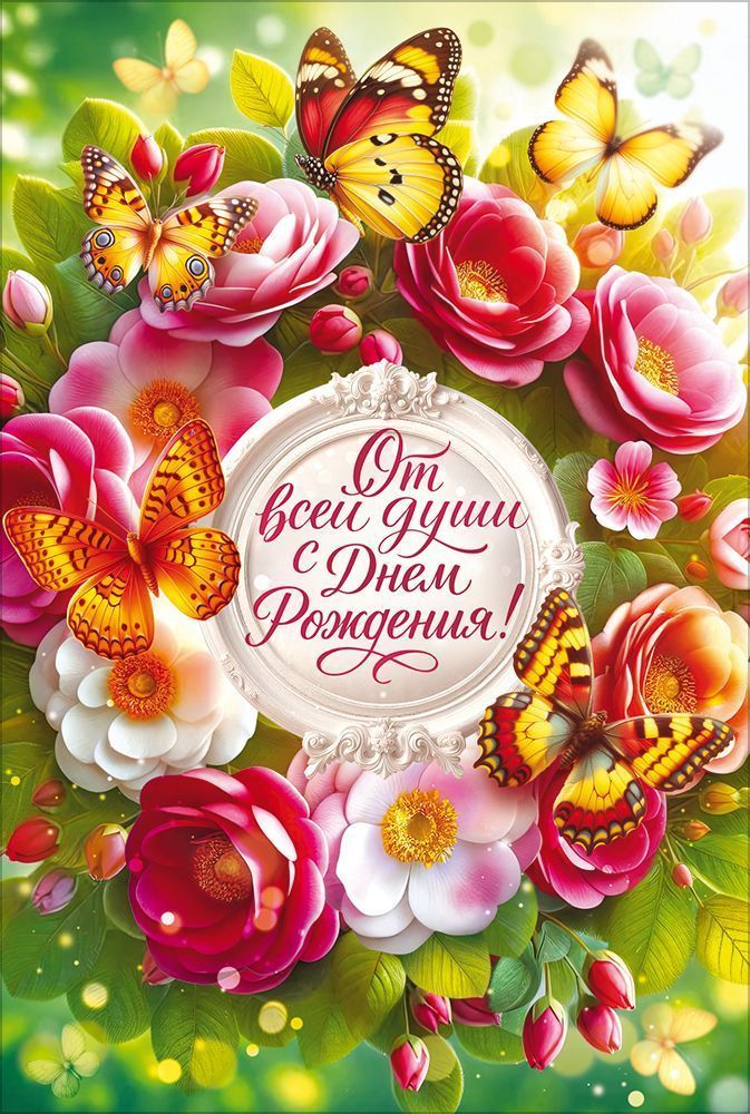 Открытка формата А5 предназначена для оформления поздравлений с днем рождения и ориентирована на использование в розничной продаже и оптовых поставках для магазинов подарков, книжных сетей и торговых точек, специализирующихся на праздничной продукции. Изделие изготовлено из плотного картона, что обеспечивает устойчивость к изгибам, сохранение формы при транспортировке и эксплуатации, а также аккуратный внешний вид при выкладке на полке и в прикассовой зоне. Лицевая сторона оформлена полноцветным изображением с крупной цветочной композицией и декоративными бабочками, в центральной части размещен поздравительный текст «От всей души с Днем Рождения», что позволяет использовать открытку как универсальное решение для поздравления взрослых адресатов в личных и деловых ситуациях. Внутри предусмотрен печатный текст с готовым поздравлением, дополнительно остается свободное место для личной надписи, что упрощает выбор для конечного покупателя и сокращает время обслуживания в рознице. Конструкция открытки включает внутренний карман/клапан для размещения денежных средств или подарочного сертификата, благодаря чему изделие может использоваться как компактный носитель денежного подарка без необходимости подбирать отдельный конверт; это удобно как для покупателей, так и для оптовых заказчиков, формирующих ассортимент к праздничным сезонам. Открытка двусторонняя, с оформлением внешних и внутренних поверхностей, что повышает восприятие качества продукции и делает ее пригодной для продажи в среднем и массовом ценовом сегменте. Размер готового изделия 182 × 122 мм обеспечивает совместимость с распространенными почтовыми и подарочными конвертами и удобство размещения на стандартных витринах и стойках. В упаковке 10 штук, что облегчает учет при оптовых закупках, планировании складских остатков и транспортировке коробами. Отсутствие дополнительной отделки снижает риск повреждений при хранении, делает поверхность менее уязвимой к истиранию и позволяет поддерживать стабильное качество партии при многократных перегрузках. Открытка подходит для круглогодичной продажи, может использоваться в качестве базовой позиции в ассортименте поздравительной продукции и оптимальна для формирования широкого выбора стандартных поздравлений с днем рождения.