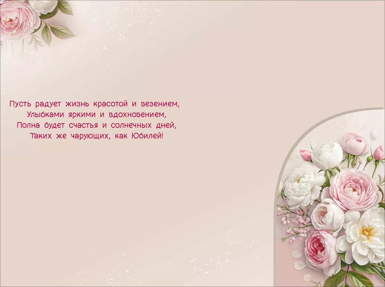 Открытка «С Юбилеем!» (букет белых и розовых пионов)