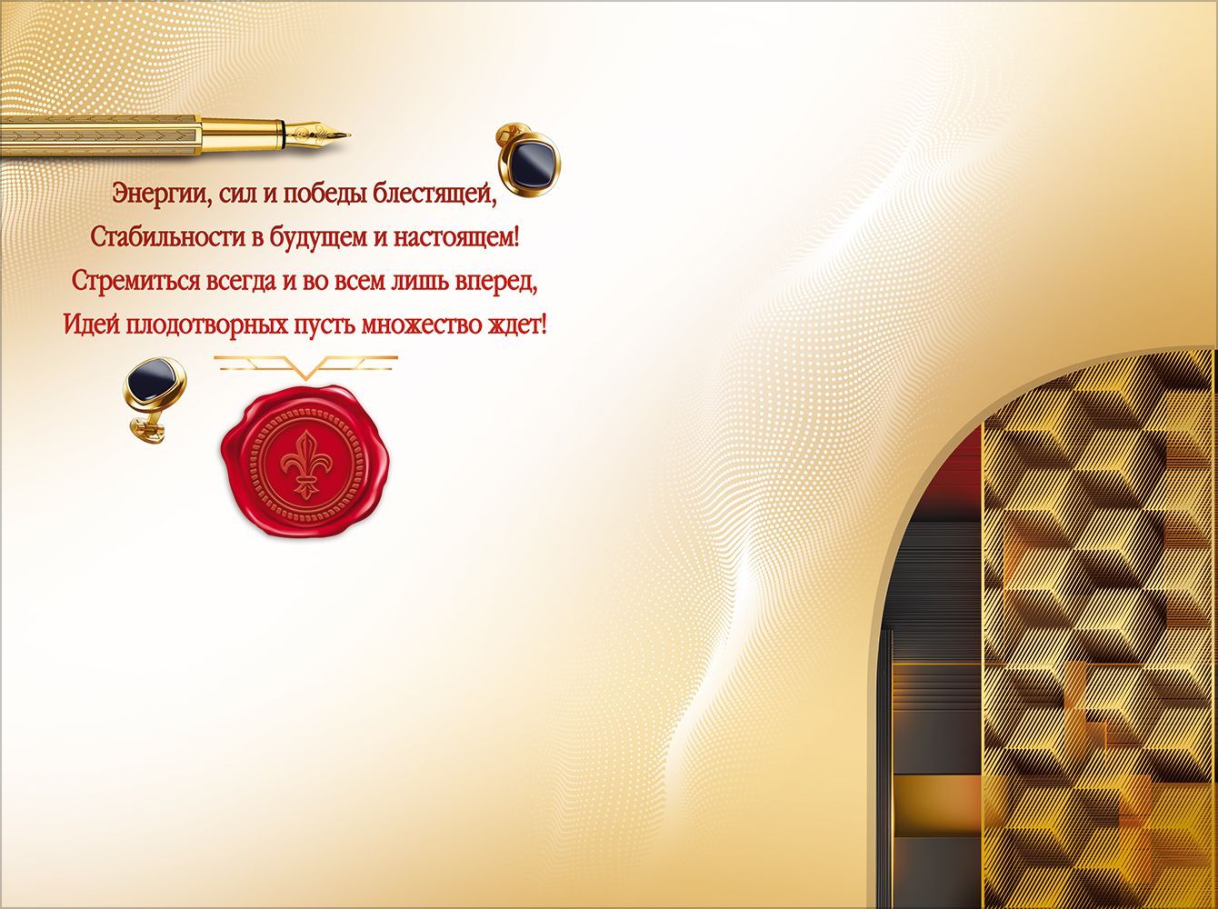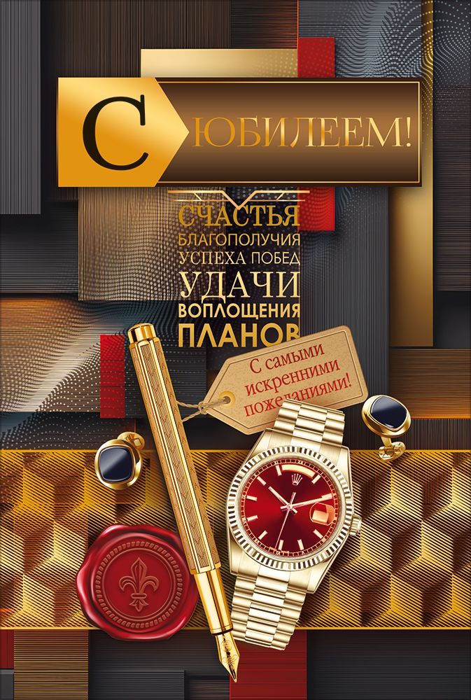 Открытка формата А5 предназначена для оформления поздравления с юбилеем и ориентирована на использование в торговых сетях, сувенирных отделах и корпоративных закупках. Изделие изготовлено из плотного картона, что обеспечивает достаточную жесткость, устойчивость к изгибам и сохранение формы при хранении и транспортировке в стандартных коробах и лотках. Размер готовой открытки 182 × 122 мм позволяет размещать ее в типовых конвертах соответствующего формата и удобно выкладывать на полке или в прикассовой зоне. Двустороннее изображение включает оформленную лицевую сторону с тематикой статусного делового подарка и внутренний разворот с заранее нанесенным поздравительным текстом, что сокращает время подготовки к вручению и делает изделие пригодным для массовых поздравлений сотрудников, партнеров и клиентов. Конструкция с карманом/клапаном для денег рассчитана на безопасное размещение купюр или подарочных сертификатов без дополнительного крепления, что удобно при использовании открытки как универсального денежного подарка. Отсутствие дополнительной отделки упрощает складирование, уменьшает риск повреждения поверхности при пересылке и делает изделие технологичным для оптовых поставок. Картонная основа хорошо выдерживает стандартные условия эксплуатации: многократное раскрытие, кратковременный контакт с офисной и бытовой средой, хранение в вертикальных и горизонтальных дисплеях. Нейтрально-деловой дизайн с акцентом на элементы статуса позволяет использовать открытку как для личных, так и для корпоративных юбилеев, в том числе для мужской аудитории. В упаковке 10 изделий, что удобно для формирования серийных поздравлений и планирования запасов на складе и в розничной точке.