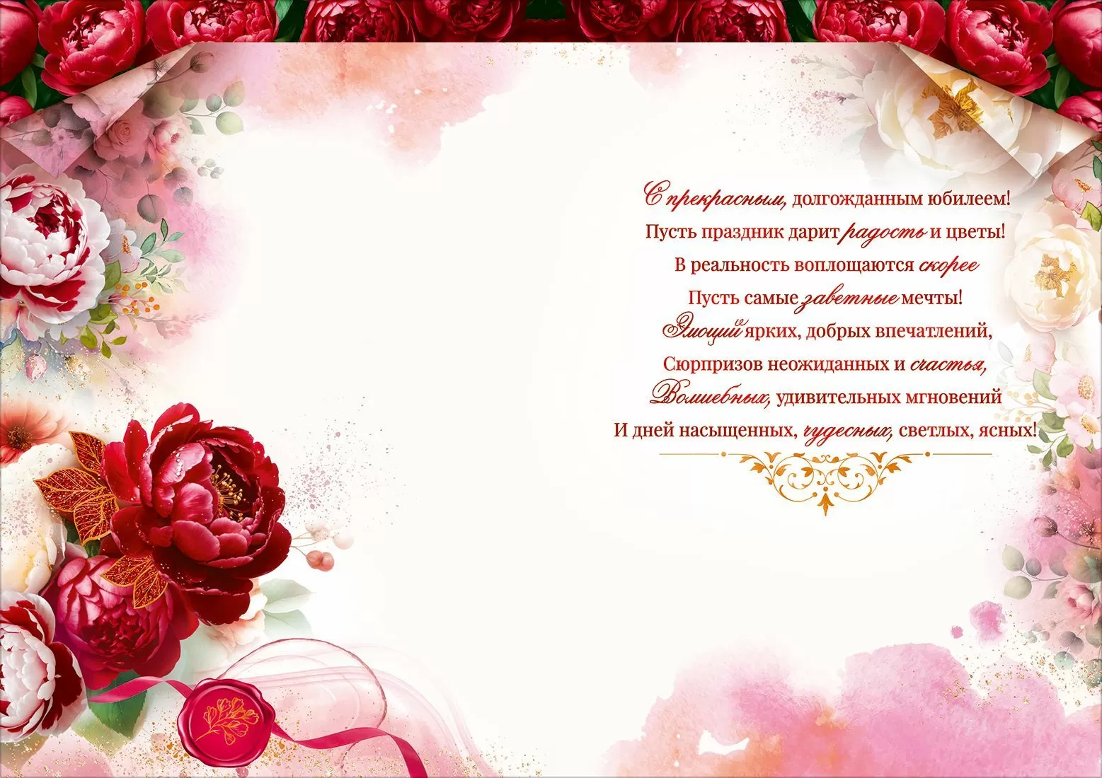 Открытка «С Юбилеем 60 лет!» (цветы, печать, золотые цифры)
