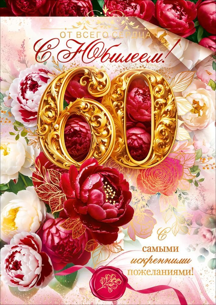 Открытка формата А4 предназначена для поздравления с 60‑летним юбилеем и ориентирована на использование в розничной продаже и оптовых поставках для магазинов, корпоративных заказчиков и организаторов мероприятий. Изделие изготовлено из плотного картона, обеспечивающего стабильную жесткость, сохранение формы и устойчивость к износу при транспортировке, хранении и многократном просмотре. Готовый размер открытки составляет 277 × 196 мм, что удобно для размещения в стандартных конвертах соответствующего формата и выкладки на стендах. Двустороннее цветное изображение включает на лицевой стороне крупное декоративное число «60», выполненное в стиле объемной золотой резьбы на фоне насыщенной цветочной композиции с пионами и розами; на оборотной стороне предусмотрено продолжение оформления и текстовое наполнение, позволяющее использовать изделие без дополнительной вклейки листов или вставок. Встроенный поздравительный текст с обращением к юбиляру и пожеланиями сокращает время подготовки к вручению и делает открытку удобной для массовых поздравлений в коллективе или при проведении торжественных мероприятий. В оформлении используется золотая фольга, за счет которой отдельные элементы надписей и орнамента имеют металлический блеск, устойчивый к истиранию при аккуратном обращении; технология тиснения фольгой повышает визуальную выразительность продукции на витрине и облегчает ее идентификацию в ассортименте. Материал и формат подобраны таким образом, чтобы открытка сохраняла презентабельный вид при хранении в стопках и транспортировке в коробах, не деформировалась и не просвечивала при ярком освещении торгового зала. В упаковке 10 одинаковых открыток, что удобно для формирования оптовых заказов, планирования складских остатков и равномерного распределения по торговым точкам, а также для использования в организациях при поздравлении группы сотрудников или партнеров, достигших 60‑летнего юбилейного возраста.