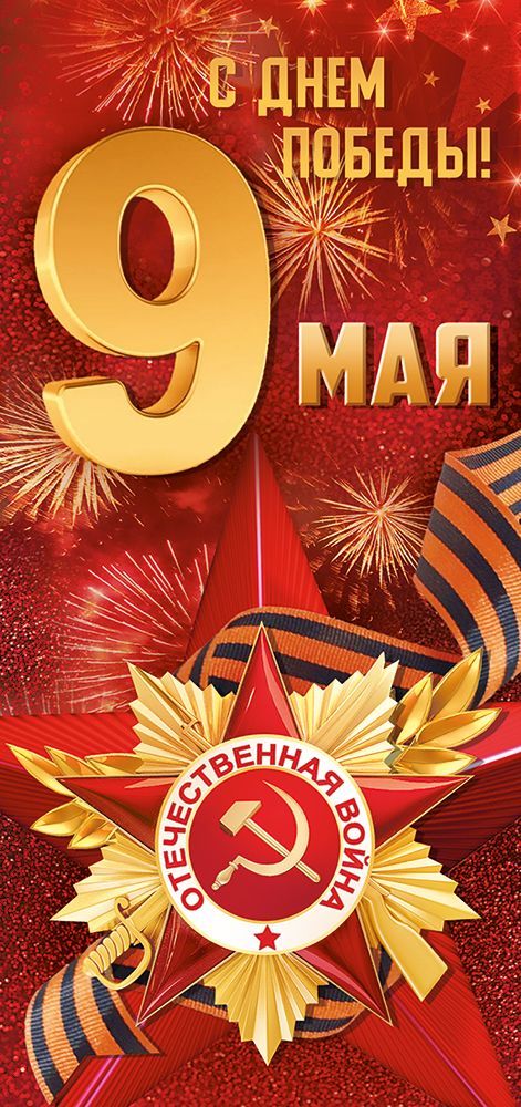 Открытка формата евро предназначена для оформления поздравлений к 9 Мая и использования в розничной продаже, корпоративных рассылках и массовых поздравительных акциях. Изделие изготовлено из плотного картона, обеспечивающего устойчивость к изгибам и износу при транспортировке, сортировке и длительном хранении на складе или в торговом зале. Лицевая сторона оформлена в тематике Дня Победы: крупная золотистая дата «9 Мая», надпись «С Днём Победы!», фейерверки на красном фоне, изображение ордена и георгиевской ленты. Поверхность дополнительно защищена и визуально выделена глянцевым УФ-лаком, который повышает стойкость красочного слоя к истиранию, выцветанию и влаге, что важно при многократных перекладках в оптовых партиях и при выкладке в местах активного покупательского трафика. Внутренняя сторона без текста, что упрощает универсальное применение: открытка подходит для личных и официальных поздравлений, может использоваться в организациях, учебных заведениях, учреждениях культуры, а также как элемент оформления подарочных наборов и сувенирной продукции к памятной дате. Точные размеры готового изделия — длина 204 мм и ширина 97 мм — соответствуют стандартному евроформату, что облегчает подбор конвертов, упаковки и позволяет эффективно планировать логистику и выкладку по высоте и ширине полок. Картонная основа сохраняет форму при вертикальном и горизонтальном размещении, открытка удобна для отправки по почте и раздачи на массовых мероприятиях. В одной упаковке поставляется 10 одинаковых открыток, что оптимально для оптовых закупок, формирования серийных поздравительных рассылок и планирования сезонного ассортимента к 9 Мая.