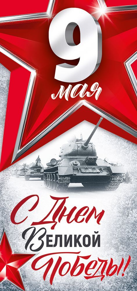Открытка «9 мая! С Днем Великой Победы!» (красные звезды, танки)