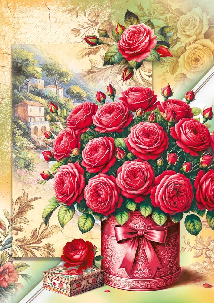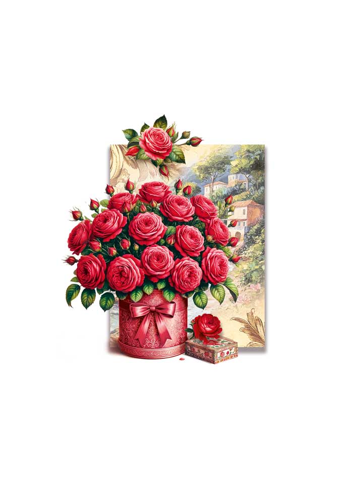 Открытка формата А4 выполнена из плотного картона и предназначена для универсального применения в розничной и корпоративной поздравительной продукции. Готовое изделие имеет размеры 277 × 196 мм, что обеспечивает достаточную площадь для восприятия изображения и удобство размещения внутри стандартных конвертов соответствующего формата. Лицевая и оборотная стороны оформлены полноцветным двусторонним изображением: на передней части размещена детализированная композиция с букетом красных роз в декоративной коробке с бантом и фоном в виде пейзажа и орнаментов, что делает открытку уместной для поздравлений с днем рождения, юбилеем, годовщиной, семейными и календарными праздниками, а также для оформления подарочных наборов. Отделка выполнена в виде радужных блесток в лаке, за счет чего отдельные элементы иллюстрации имеют выразительный декоративный эффект при искусственном и дневном освещении, не нарушая читаемости изображения и не ухудшая устойчивость поверхности к истиранию. Внутренняя сторона не содержит текста, что дает возможность использовать изделие в широком ассортименте сценариев: для индивидуальных надписей, корпоративных поздравлений с логотипом, вкладышей к подарочным сертификатам и сувенирной продукции. Картонная основа обеспечивает стабильную геометрию, сохранение формы при хранении и транспортировке, а также совместимость с большинством стандартных витринных и напольных стоек для открыток. Плотность материала и качественная печать способствуют долговечности изображения и устойчивости к случайным заломам при аккуратной эксплуатации. В упаковке 10 штук, что удобно для оптовых закупок, формирования однородных товарных позиций и планирования остатка на складе и в торговом зале.