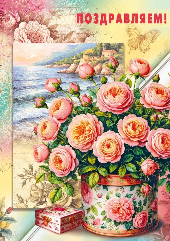 Открытка «Поздравляем!» в формате А4 станет прекрасным дополнением к любому подарку.