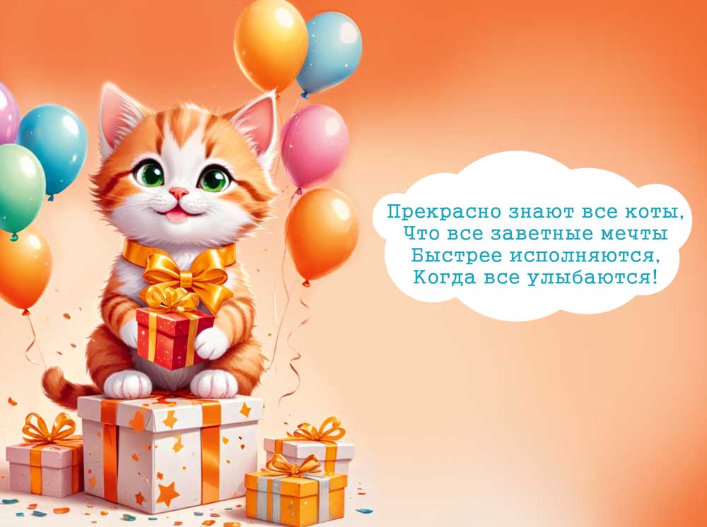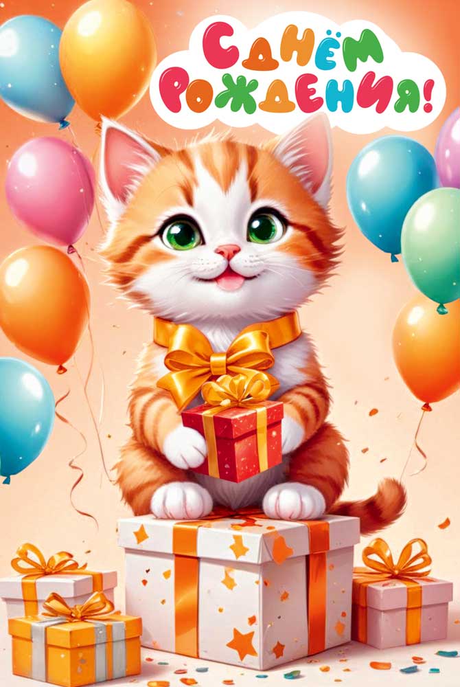 Открытка «С днем рождения!» (Котик)
