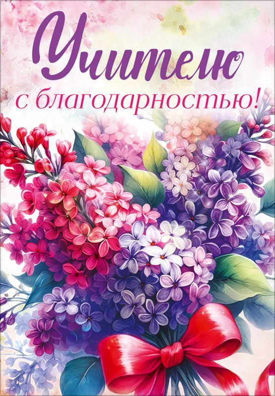 Открытка «Учителю с благодарностью» (букет сирени с бантом)