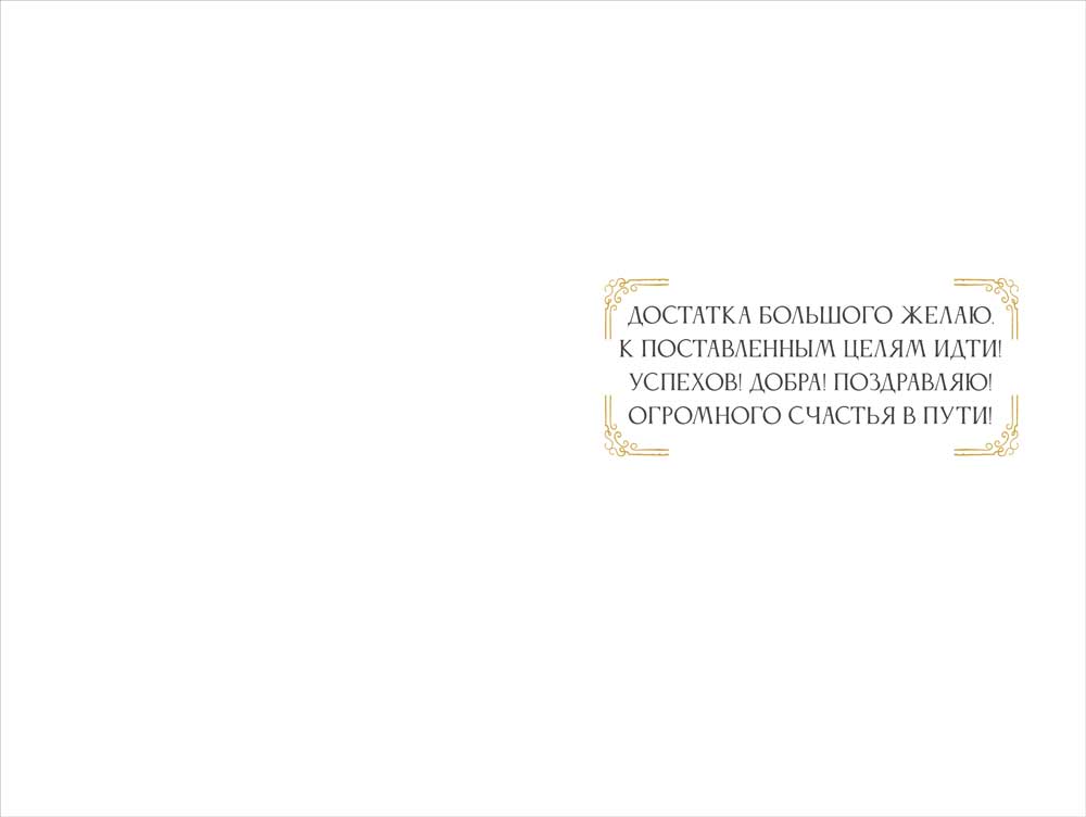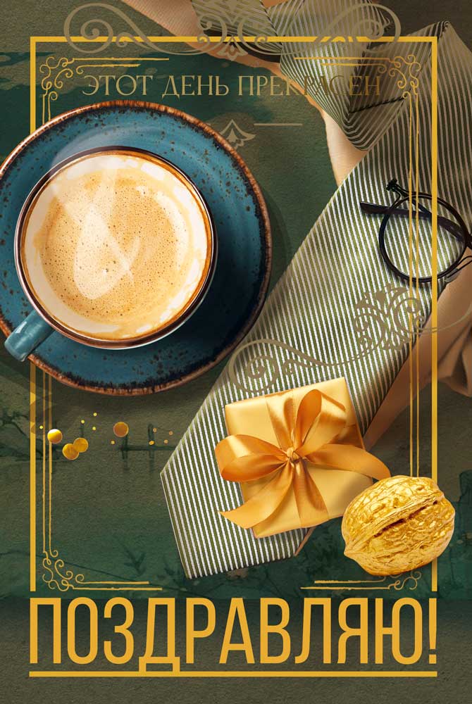 Открытка формата А5 изготовлена из плотного картона, обеспечивающего стабильную геометрию и устойчивость к деформации при хранении и транспортировке в крупной упаковке и на розничной выкладке. Готовое изделие имеет размеры 182 × 122 мм, что удобно для стандартных конвертов и облегчает планирование полочного пространства и логистики при оптовых поставках. Лицевая сторона оформлена полноцветным изображением чашки кофе, подарочной коробки с бантом и декоративных элементов в золотисто-зелёной гамме, дополненных надписями «Этот день прекрасен» и «Поздравляю!». Изображение двустороннее: оборот содержит продолжение визуального оформления и внутренний поздравительный текст, что снижает потребность в дополнительной полиграфии и упрощает выбор конечному покупателю. Для отделки применены радужные блестки в лаке, создающие умеренный декоративный эффект и повышающие износостойкость поверхности за счёт защитного лаковго слоя; это важно при частом перекладывании товара на складе и в торговом зале. Картонная основа хорошо держит сгиб, не растрескивается по линии сгиба и сохраняет аккуратный внешний вид при длительном хранении. Открытка подходит для универсальных поздравлений с днём рождения, профессиональными и личными праздниками, может использоваться как самостоятельный носитель пожеланий или как дополнение к подарку. Нейтральный, но статусный дизайн уместен для адресатов разных возрастов и статуса, в том числе в деловой среде. В одной упаковке содержится 10 изделий, что удобно для формирования серийных заказов, планирования остатков и равномерного распределения по торговым точкам.