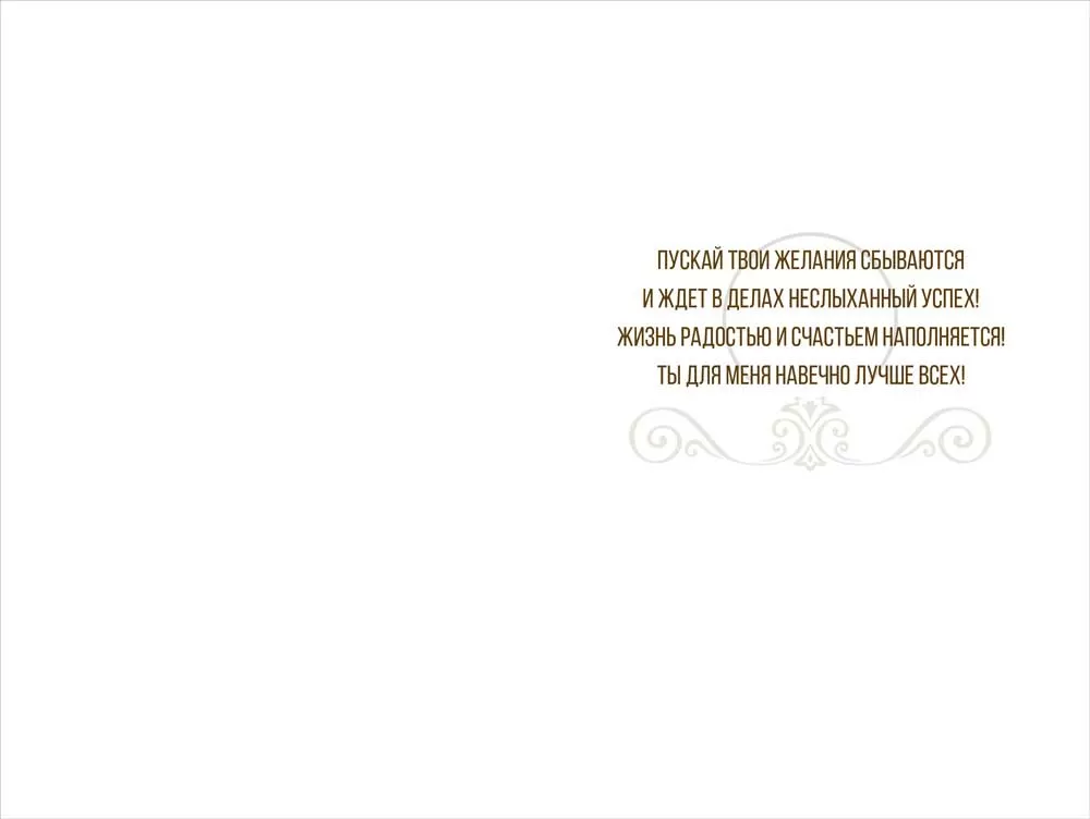Открытка «Моему любимому мужу» с клапаном в формате А5 станет прекрасным дополнением к подарку и украсит любое поздравление. Стильный дизайн в кофейных оттенках придется по душе каждому! В центре композиции необычная кружка с изображением головы льва, как символа силы и бесстрашия. Рядом лежит аппетитное печенье с шоколадной крошкой. Рассыпанные тут же кофейные зерна придают картинке легкую небрежность. Внутри открытки есть замечательные стихи с теплыми пожеланиями и специальный карман для денег. Такой презент можно вручить в качестве основного подарка или в дополнение к нему, чтобы украсить поздравление и сделать его более оригинальным. Изделие выполнено из качественных материалов, что обеспечивает ему прочность и долговечность, поэтому оно станет чудесным памятным сувениром для получателя.