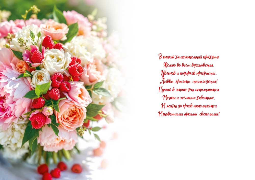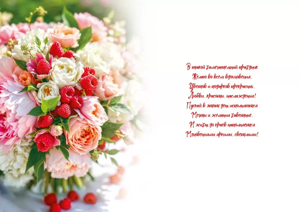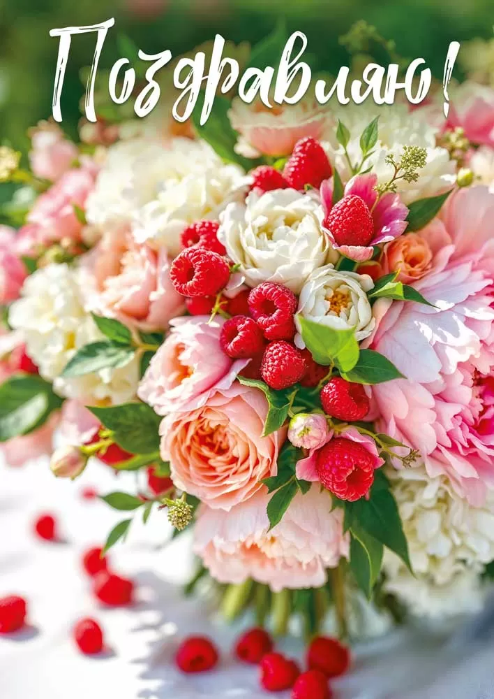Открытка «Поздравляю!» (букет с ягодами малины)
