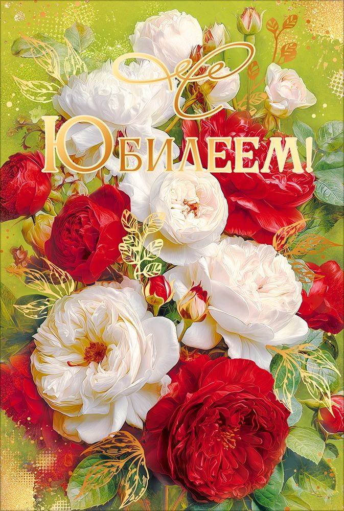 Открытка «С Юбилеем!» (букет из красных и белых роз)