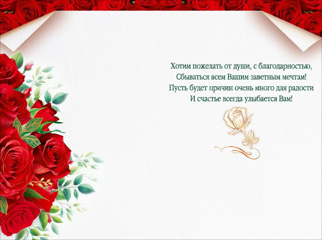 Открытка «Учителю с благодарностью» (красные розы, белый лист)