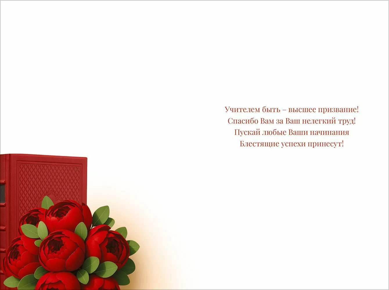 Открытка «Учителю спасибо» (букет красных цветов, книги, глобус)