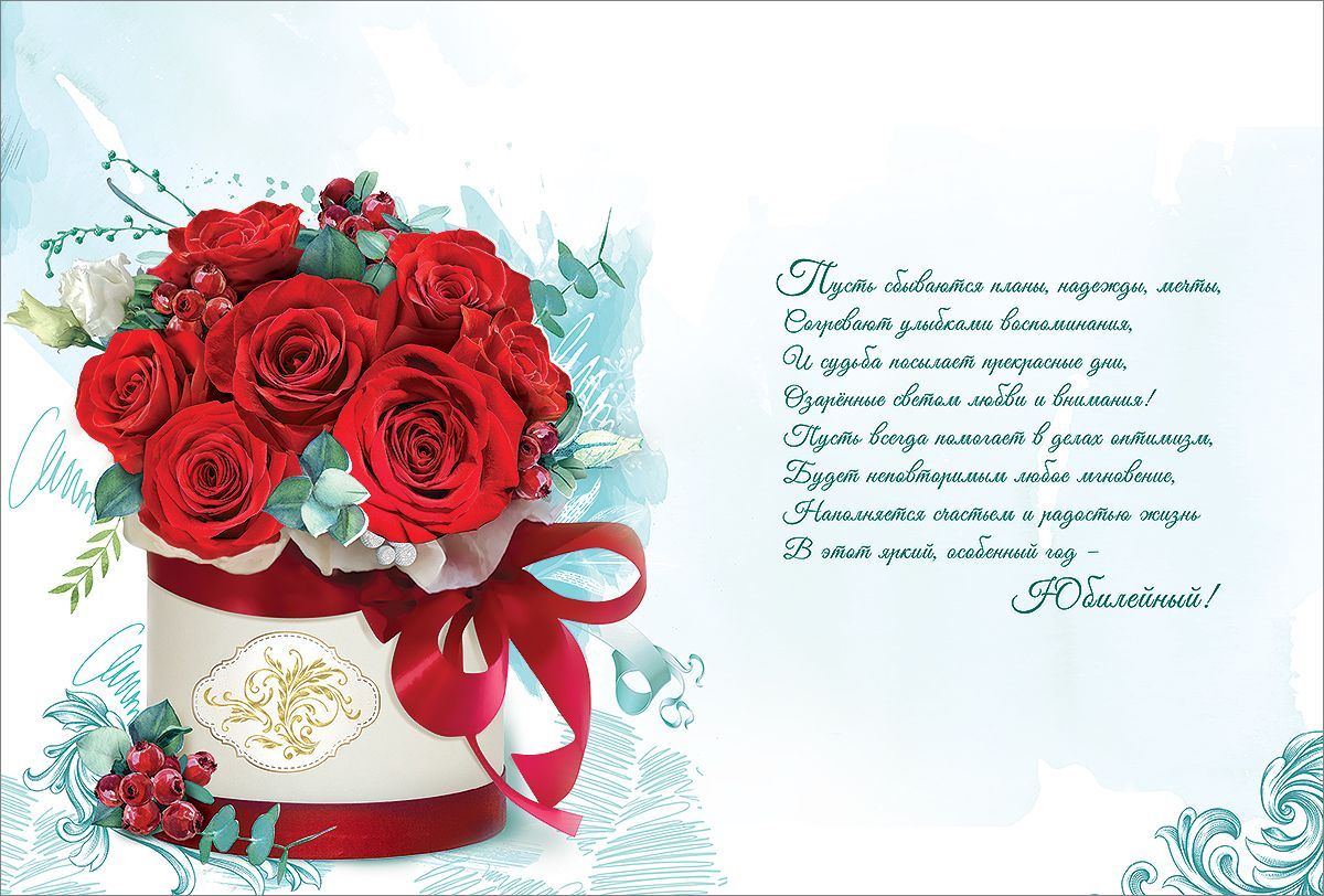 Открытка формата А4 «С Юбилеем» выполнена из плотного картона, что обеспечивает стабильную геометрию изделия при хранении, транспортировке и последующем использовании. Готовое изделие имеет размеры 276 × 205 мм, что удобно для размещения в стандартных конвертах соответствующего формата и экспонирования на витрине. Лицевая сторона оформлена крупной композицией из красных роз в декоративной коробке с лентой и дополнена надписью «С Юбилеем!», хорошо читаемой с расстояния, что важно для выкладки в торговом зале. В отделке применены радужные блестки в лаке, создающие умеренный перелив и визуальный акцент на цветах и декоративных элементах без снижения разборчивости текста; покрытие устойчиво к истиранию при бережном обращении и не осыпается при многократном перелистывании. Внутри размещен готовый поздравительный текст, позволяющий сократить время на заполнение и обеспечить единый стиль поздравления, при этом остается свободное место для личной подписи и даты. Картонная основа сохраняет форму при вертикальной установке открытки на столе или полке, что повышает ее декоративную функцию у конечного получателя. Дизайн ориентирован на универсальное использование в качестве юбилейного поздравления для женщин и мужчин, подходит для личных, корпоративных и официальных поводов, что облегчает планирование ассортимента для оптовых закупок. Открытка поставляется по 10 штук, удобна для формирования выкладки по цветовой и тематической группам, легко упаковывается в стандартные короба, не требует специальных условий хранения, допускает длительное складирование без потери потребительских свойств при соблюдении нормальной влажности и отсутствия прямого воздействия солнечного света.