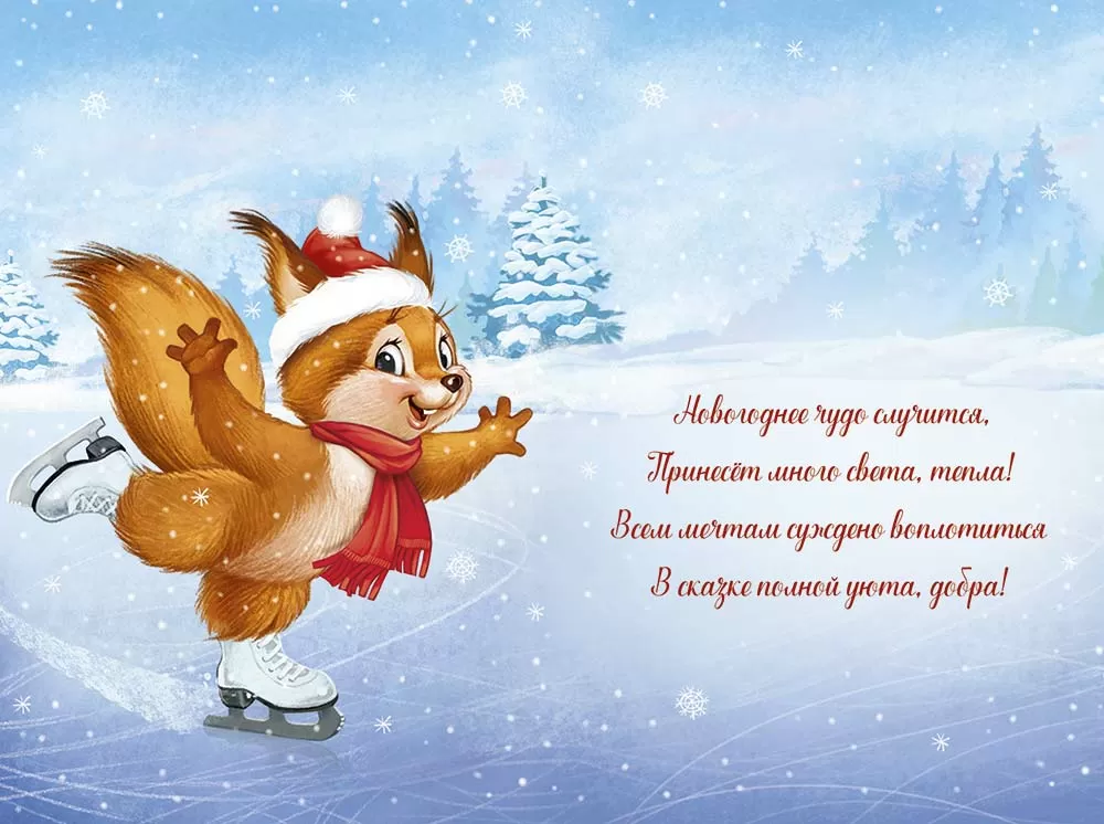 Новогодняя открытка со сказочным зимним дизайном и милым ретро-сюжетом. Теплые и добрые слова для самых душевных поздравлений! Лаконичная композиция в сочетании с красивыми стихотворениями — залог идеального поздравления.