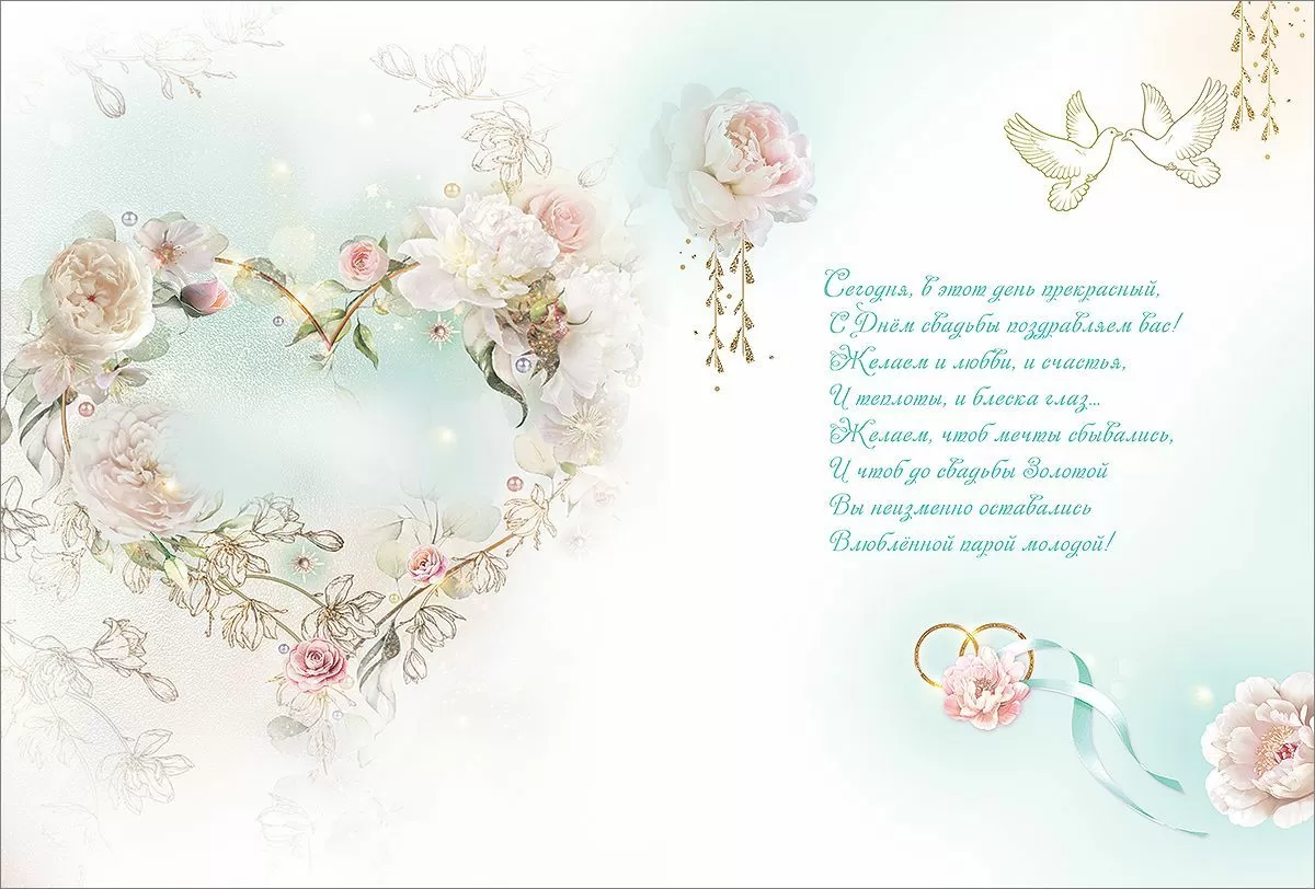 Открытка "Прекрасным молодоженам" - настоящее произведение искусства, созданное с любовью и вниманием к деталям. Эта великолепная открытка формата А4 и размером 205х276 мм - прекрасный подарок для молодой пары. Украшена золотой фольгой и конгревом, она привлекает внимание своим изысканным дизайном. Внутри открытки есть стихотворение, написанное специально для новобрачных, которое они смогут хранить и перечитывать в течение своей счастливой жизни вместе. Это особое послание, наполненное нежностью и любовью, делает открытку символом их счастья и нового начала.