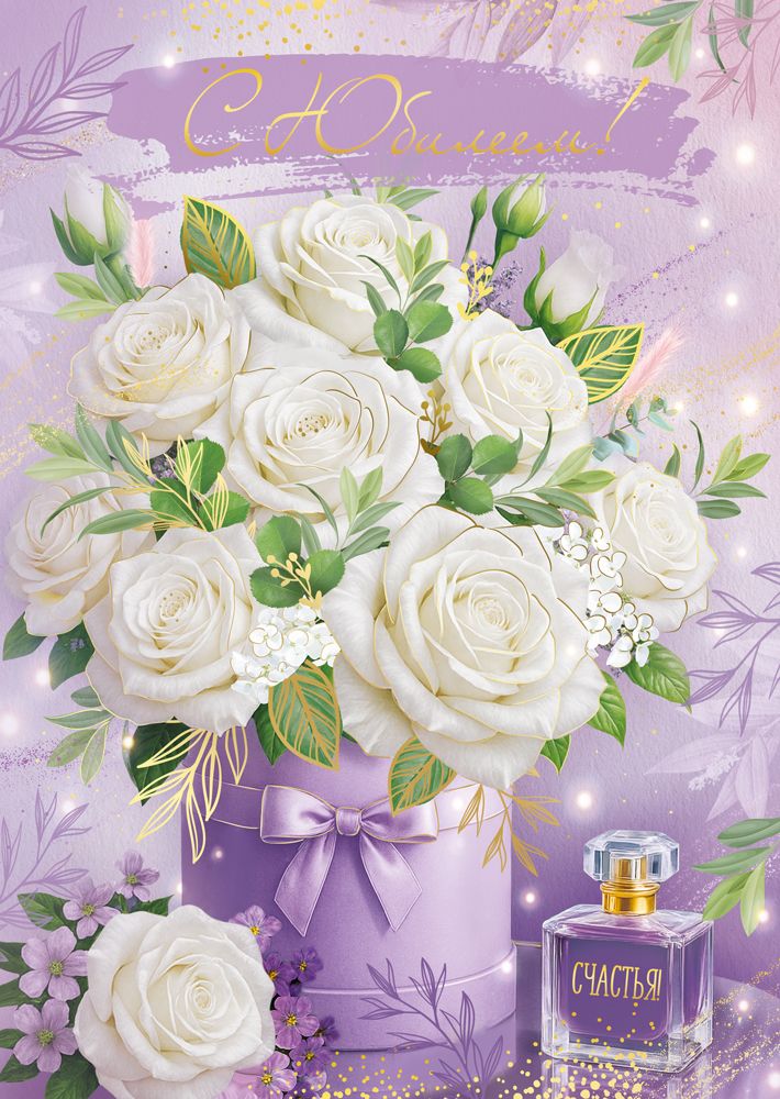 Открытка «С Юбилеем!» (букет белых роз)