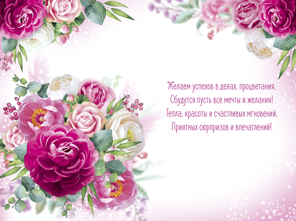 Поздравительная открытка "Поздравляем!" с изображением красивых цветов! Женственная композиция и теплые слова — самое желанное поздравление!