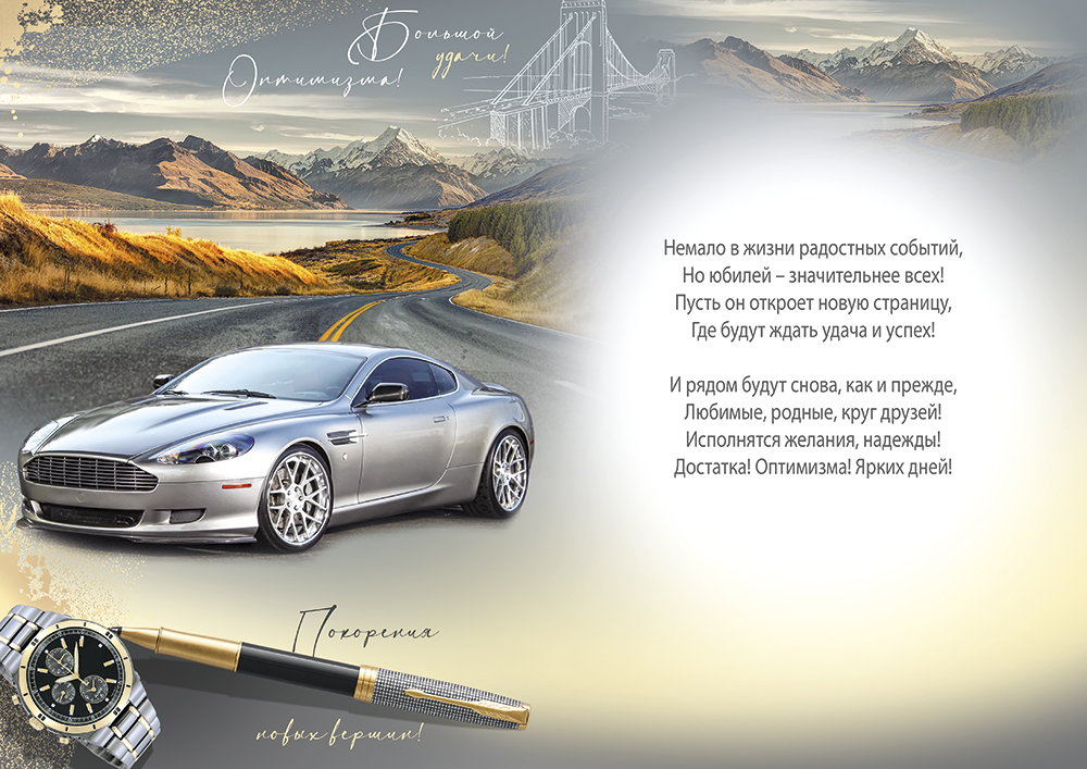 Поздравительная открытка «С Юбилеем!» на 60 лет в сдержанных тонах для настоящих мужчин. Простая композиция и брутальное стихотворение – самое подходящее поздравление!