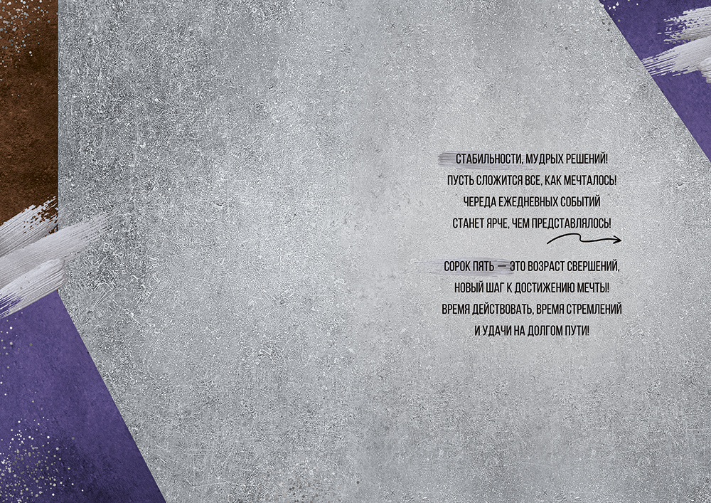 Поздравительная открытка «С Юбилеем!» на 45 лет в сдержанных тонах для настоящих мужчин. Простая композиция и брутальное стихотворение – самое подходящее поздравление!