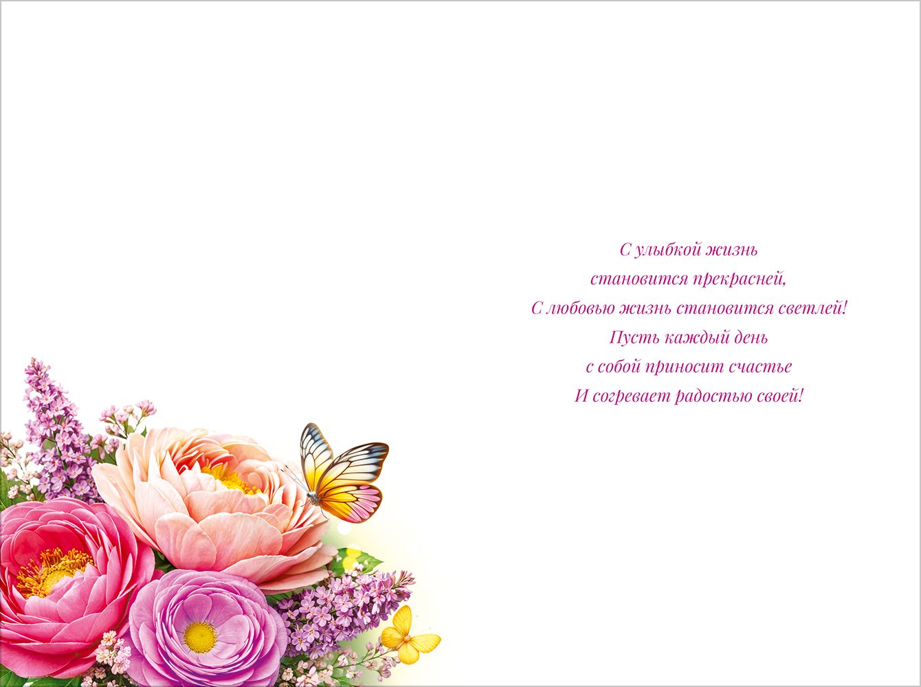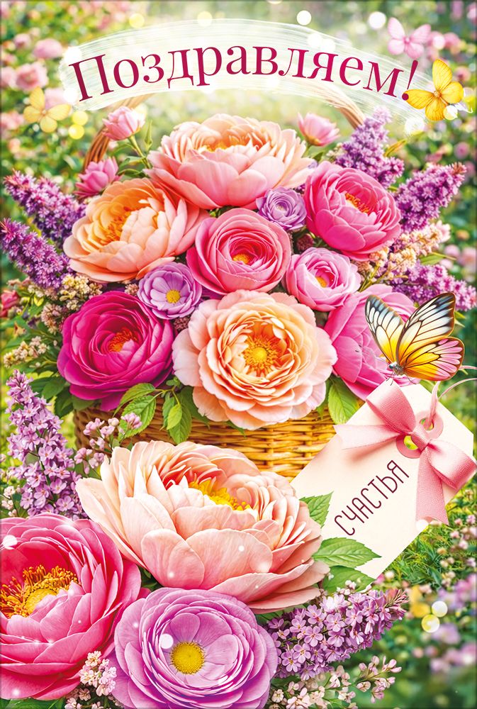 Поздравительная открытка среднего формата с надписью «Поздравляем!» – идеальное решение для подарка или дополнения к подарку! На открытке изображено множество разноцветных роз, люпины и бирка с надписью "Счастья!". Внутри – поздравительное стихотворение. Изделие изготовлено из прочного материала, который хорошо держит форму и не помнется при транспортировке и использовании. Сверху на картонную основу нанесено четкое полноцветное изображение. Благодаря высокому качеству печати и защитному покрытию краски не выцветут, и открытка на праздник будет радовать адресата многие годы. Размеры – 122х182. В упаковке – 10 шт.