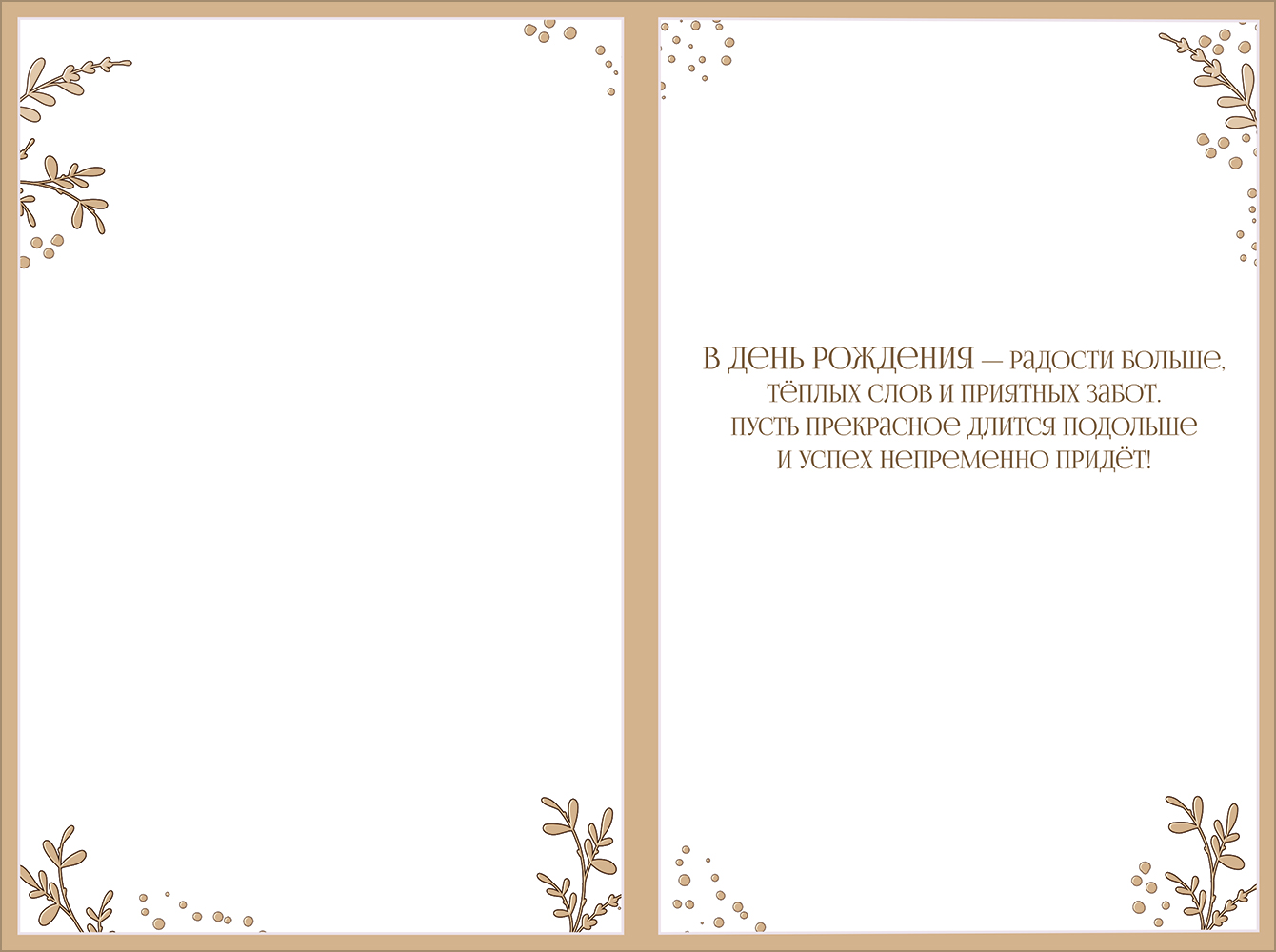 Внутри открытки размещены тёплые поздравительные стихи. Качественные материалы и высокая чёткость печати обеспечивают изделию аккуратный внешний вид и долговечность. Открытка подойдёт для поздравления близких, коллег и друзей.