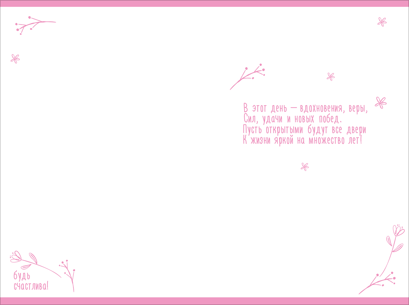 Внутри открытки — добрые стихи с искренними пожеланиями. Изделие изготовлено из плотного материала с качественной печатью, что обеспечивает его прочность и привлекательный внешний вид.