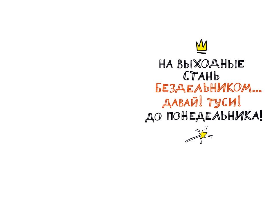 Открытка формата А5 с текстом «Ура! Пятница!» выполнена из плотного картона и рассчитана на регулярное использование в розничных точках и корпоративных проектах. Готовое изделие имеет размеры 182×122 мм, что обеспечивает совместимость с большинством стандартных конвертов и удобство выкладки в торговом оборудовании. Лицевая сторона оформлена яркой иллюстрацией с котом и контрастным фоновым цветом, что делает открытку заметной на полке и позволяет включать её в ассортимент поздравительной и мотивационной продукции, ориентированной на неформальные поводы, завершение рабочей недели, внутренние корпоративные мероприятия и небольшие поощрительные подарки. Внутри предусмотрен печатный текст, что сокращает время подготовки к вручению и упрощает использование в офисах, магазинах, сервисных компаниях и других организациях, где требуется быстрое оформление небольших поздравлений для сотрудников, клиентов или партнёров. Картонная основа устойчива к изгибам и истиранию, сохраняет геометрию при хранении стопой и транспортировке, подходит для длительного складского запаса. В отделке применены конгрев, выборочный УФ-лак и пантонные краски, за счёт чего отдельные элементы изображения и надписи имеют рельеф и локальный глянец, а цвета остаются стабильными и насыщенными при искусственном и естественном освещении, что важно для витринной выкладки и фотосъёмки товара. Конгрев облегчает тактильное восприятие и придаёт изделию более выраженный «подарочный» характер, не влияя на общие габариты и удобство упаковки. Пантонные краски обеспечивают воспроизводимое фирменное цветовое решение при повторных заказах, что удобно для оптовых покупателей, поддерживающих единый стиль линейки. В упаковке 10 штук, формат фасовки оптимален для оптовых закупок с последующим распределением по точкам продаж, а также для корпоративных отделов, формирующих партии поздравлений к пятничным мероприятиям и тематическим акциям.