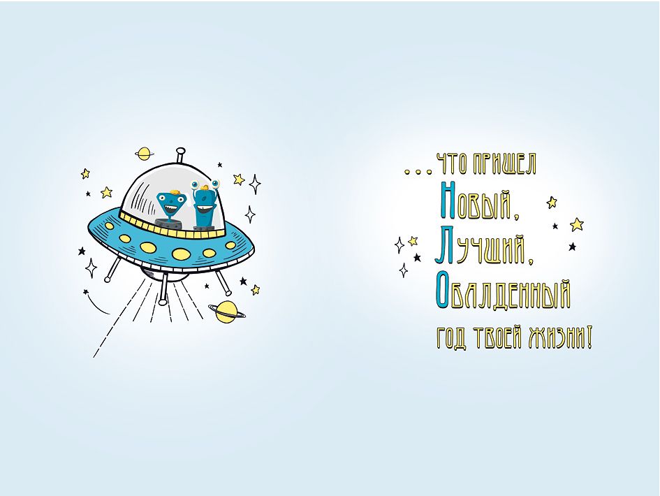 Открытка формата А5 предназначена для поздравления с днём рождения и ориентирована на использование в розничной продаже и в оптовых поставках для магазинов подарков, канцелярии и сетевых торговых точек. Изделие изготовлено из плотного картона, обеспечивающего стабильную геометрию и сохранность формы при транспортировке, выкладке и хранении в стандартных стеллажных системах. Готовый размер открытки составляет 182 × 122 мм, что удобно для размещения в типовых конвертах соответствующего формата и позволяет формировать однородные товарные ряды. Лицевая сторона оформлена полноцветным изображением космической тематики: летающая тарелка с забавными инопланетянами, звёзды и планеты, крупная надпись «В День Рождения!». Дополнительный визуальный эффект создаётся за счёт применения золотой фольги в отдельных элементах рисунка и шрифта, что придаёт изображению выразительность и делает открытку заметной на полке без необходимости использования сложной упаковки. Печать двусторонняя: внешняя сторона содержит основной иллюстративный блок и поздравительный заголовок, внутренняя сторона дополнена готовым текстом пожелания, что сокращает время выбора и оформления поздравления для конечного покупателя и снижает потребность в дополнительных расходных материалах. Конструкция изделия рассчитана на многократные тактильные воздействия в процессе выбора и перелистывания, картон устойчив к изгибам в пределах бытовой эксплуатации, не расслаивается по линии сгиба и сохраняет читаемость печати. Открытка подходит для поздравления детей и подростков, а также взрослых, которым близка игровая и юмористическая космическая стилистика. Универсальный дизайн позволяет включать данную позицию в постоянный ассортимент, поддерживать тематические выкладки ко дню рождения и формировать наборы с сопутствующей продукцией. В упаковке — 10 одинаковых открыток, что удобно для планирования остатков, учёта и пополнения полочного запаса при оптовых закупках.