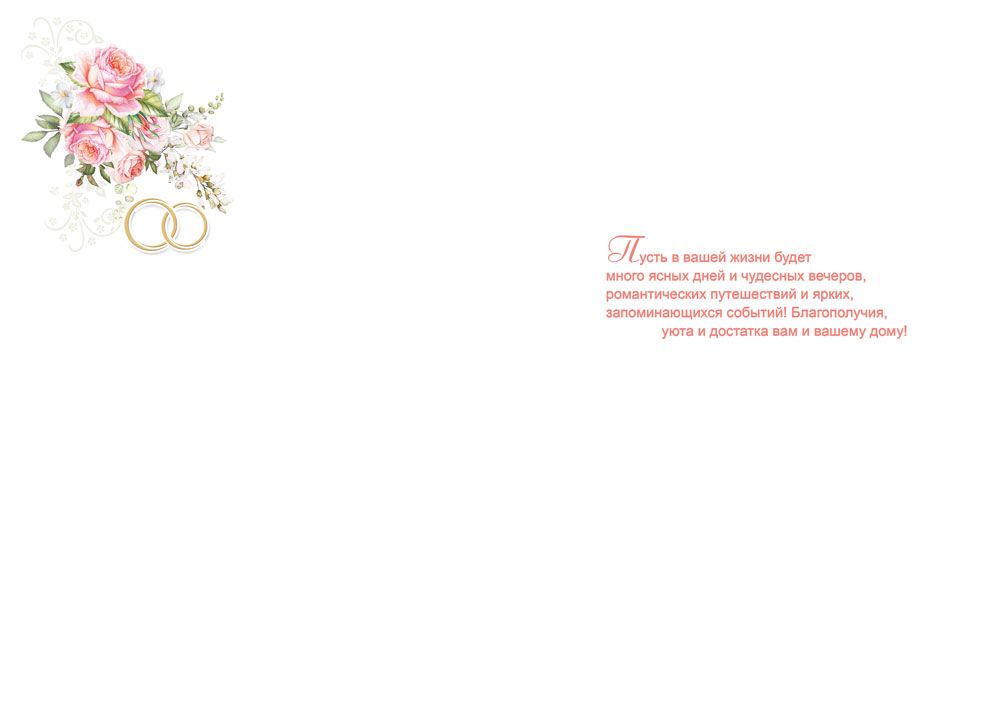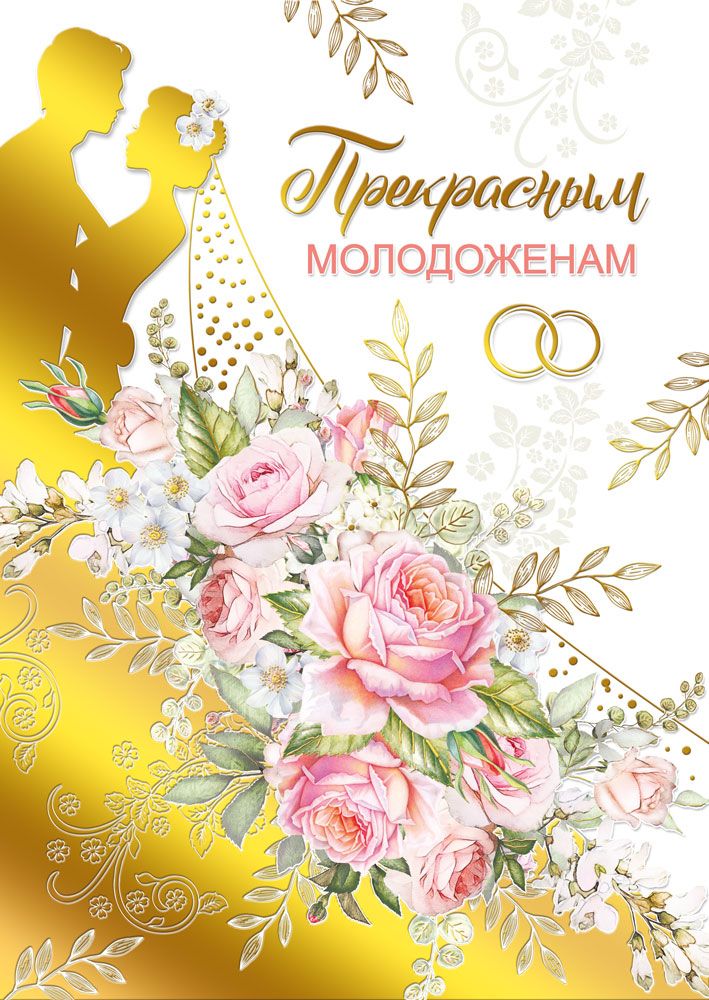 Открытка формата А4 предназначена для поздравления с бракосочетанием и ориентирована на использование в профессиональном и розничном свадебном ассортименте. Изделие изготовлено из плотного картона, что обеспечивает устойчивость к изгибам, сохранение формы при транспортировке и хранении, а также аккуратный внешний вид на витрине и после вручения. Готовый размер открытки составляет 277 × 196 мм, что позволяет размещать её как отдельный акцентный элемент на подарке или в составе свадебной композиции. Лицевая сторона оформлена изображением букета роз и свадебной пары на золочёном фоне с декоративными элементами, визуально подчеркивающими тематику торжества. Текстовое оформление включает обращение «Прекрасным молодожёнам» и дополнено графическим изображением обручальных колец, что делает назначение открытки однозначно понятным и снижает риск ошибок при подборе ассортимента для торговых точек. Для повышения износостойкости и выразительности применены УФ-лак выборочный и золотая фольга: лак защищает наиболее нагруженные участки от истирания и придает локальный глянец, фольгирование формирует чёткие металлические акценты, устойчивые к выцветанию при стандартных условиях эксплуатации. Внутри размещён печатный поздравительный текст, что сокращает время обслуживания покупателей и упрощает выбор готового решения без необходимости самостоятельного написания поздравления. Количество в упаковке — 10, что удобно для планирования закупок, выкладки и учёта остатков в розничных и оптовых каналах. Открытка подходит для продажи поштучно, формирования тематических свадебных витрин, комплектации подарочных наборов, а также для использования организаторами мероприятий и свадебными салонами как стандартизированный элемент поздравительного протокола.