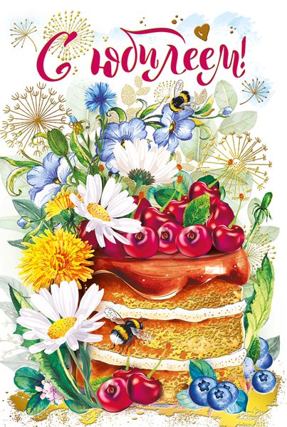 Открытка формата А5 предназначена для поздравления с юбилеем и ориентирована на использование в качестве универсального позиционируемого товара в ассортименте праздничной продукции. Изделие изготовлено из плотного картона, обеспечивающего достаточную жесткость и устойчивость к деформации при хранении, транспортировке и эксплуатации. Лицевая сторона оформлена полноцветным изображением праздничного торта с ягодами, полевыми цветами и декоративными элементами, что делает открытку уместной для широкого круга юбилейных дат и получателей. Дополнительное визуальное выделение ключевых элементов композиции и надписи «С юбилеем!» достигается за счет применения выборочного УФ-лака и золотой фольги; такая отделка повышает износостойкость наружного слоя, устойчивость к истиранию и придает изображению выраженный глянец и аккуратный металлический блеск отдельных фрагментов. На внутреннем развороте предусмотрен заранее напечатанный поздравительный текст, что сокращает время подготовки к вручению и удобно как для розничного покупателя, так и для корпоративного использования, когда требуется оформить большое количество поздравлений в едином стиле. Готовое изделие имеет длину 182 мм и ширину 122 мм, размеры соответствуют стандартному почтовому формату, что облегчает подбор конвертов и упаковки, а также позволяет эффективно планировать складские ячейки и транспортные короба при оптовых поставках. Плотный картон сохраняет форму открытки при вертикальной установке на столе или полке, что важно при витринной выкладке и для конечного получателя, использующего изделие как элемент праздничного оформления интерьера. В упаковке 10 одинаковых открыток, что удобно для формирования серийных партий, равномерного пополнения ассортимента и расчета потребности при заказах для магазинов, офисов и организаций, поздравляющих сотрудников и партнеров. Универсальный тематический дизайн без привязки к полу и конкретному возрасту позволяет включать данную открытку в базовую линейку юбилейной продукции и использовать ее в течение всего года без сезонных ограничений.