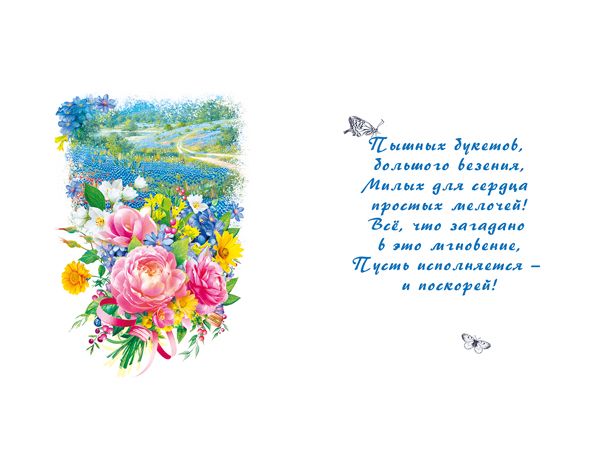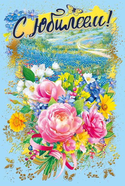 Открытка формата А5 предназначена для оформления поздравлений с юбилеем и ориентирована на использование в розничной продаже и оптовых поставках для торговых точек, книжных магазинов, цветочных салонов и компаний, формирующих ассортимент подарочной продукции. Изделие изготовлено из плотного картона, обеспечивающего стабильную геометрию и сохранность формы при хранении, транспортировке и выкладке. Размер готового изделия 182 × 122 мм позволяет размещать открытку в стандартных конвертах соответствующего формата и использовать ее в витринных экспозициях без дополнительной подрезки. Лицевая сторона оформлена полноцветным изображением с крупным букетом цветов, декоративными элементами и надписью «С юбилеем!», что делает назначение открытки однозначно понятным для конечного покупателя и упрощает подбор под конкретный повод. Применена комбинированная отделка: выборочный УФ-лак и золотая фольга, за счет чего отдельные фрагменты изображения и текста визуально выделяются, создают эффект глубины и подчеркивают праздничный характер изделия. Такая технология повышает износостойкость лицевой стороны к истиранию, делает открытку более устойчивой к случайным загрязнениям и механическим воздействиям в процессе многократного перекладывания при оптовых операциях. Внутри размещен готовый поздравительный текст, что удобно для покупателей, предпочитающих лаконичное личное дополнение к уже сформулированному обращению. Конструкция открытки рассчитана на стандартное раскрытие по сгибу, что обеспечивает аккуратное открывание и закрывание без растрескивания картона при корректном хранении. Плотность материала и формат способствуют компактной упаковке и рациональному использованию складского пространства; изделия не деформируются в стопках и подходят для вертикальной и горизонтальной выкладки. В одной упаковке 10 экземпляров, что удобно для планирования закупок и поддержания стабильного наличия ходовой позиции в ассортименте. Открытка может использоваться как самостоятельный элемент подарка или в комплекте с цветами, сувенирами и кондитерскими изделиями, обеспечивая универсальность применения в розничных и корпоративных сценариях поздравления юбиляров.