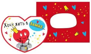 Открытка с одинарным сложением выполнена в форме сердца. Материал — плотный картон. Сверху на картонную основу нанесено красочное полноцветное изображение. Размеры открытки: 102х80 мм. Формат: А7.