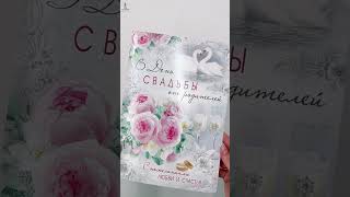 Большая свадебная открытка «в День свадьбы! От родителей» с дизайнерским шрифтом и нежными изображением. Блестящие элементы и теплые пожелания – залог душевного поздравления.