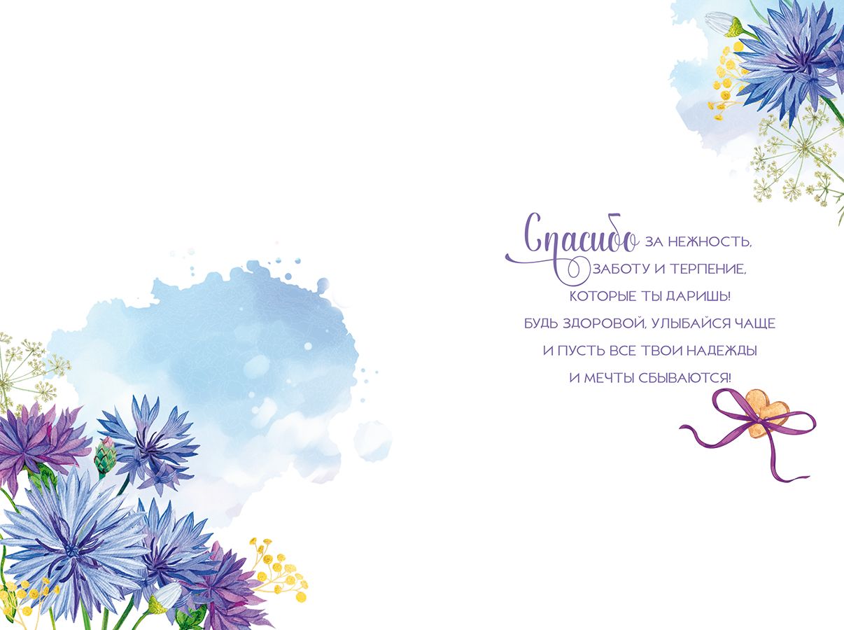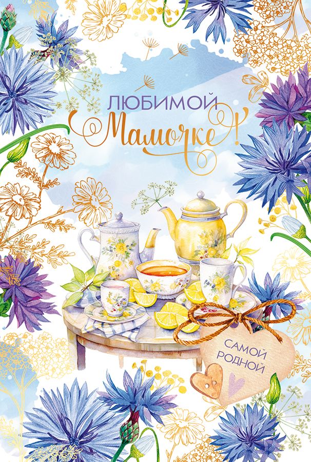 Открытка формата А5 предназначена для поздравления мамы и ориентирована на использование в розничной продаже и оптовых поставках для сезонных и постоянных ассортиментов. Основа изделия выполнена из плотного картона, что обеспечивает стабильную форму, устойчивость к изгибам и износу при транспортировке, выкладке и хранении. Готовый размер открытки составляет 182 × 122 мм, что удобно для стандартных конвертов соответствующего формата и позволяет формировать единые упаковочные и складские решения. Фигурная вырубка придаёт изделию аккуратный контур и подчёркивает композицию лицевой стороны, при этом края остаются ровными и не крошатся при многократном перелистывании. На лицевой стороне размещена иллюстрация в мягкой акварельной гамме с сервированным столом, цветами и надписью «Любимой мамочке!», дополненная декоративным ярлычком с текстом «Самой родной», что делает открытку функциональной для поздравлений ко Дню матери, дню рождения, семейным событиям и частным поводам. Внутри предусмотрен готовый печатный текст, позволяющий сократить время подготовки поздравления и обеспечить единый стиль обращения, что удобно как для индивидуального покупателя, так и для организаций, формирующих массовые поздравления сотрудникам или клиентам. Отделка золотой фольгой подчёркивает элементы надписей и орнамента, создаёт чёткие блестящие акценты и визуально выделяет открытку на полке, при этом фольгирование выполнено на устойчивом слое, не стирающемся при нормальной эксплуатации. Партия упакована по 10 штук, что упрощает учёт и планирование закупок, позволяет оптимизировать выкладку по сериям и формировать тематические подборки. Открытка совместима с типовыми витринными держателями и напольными стендами для продукции формата А5, не требует специальных условий хранения, допускает длительное складирование без потери геометрии и качества печати при соблюдении стандартных требований к влажности и температуре.